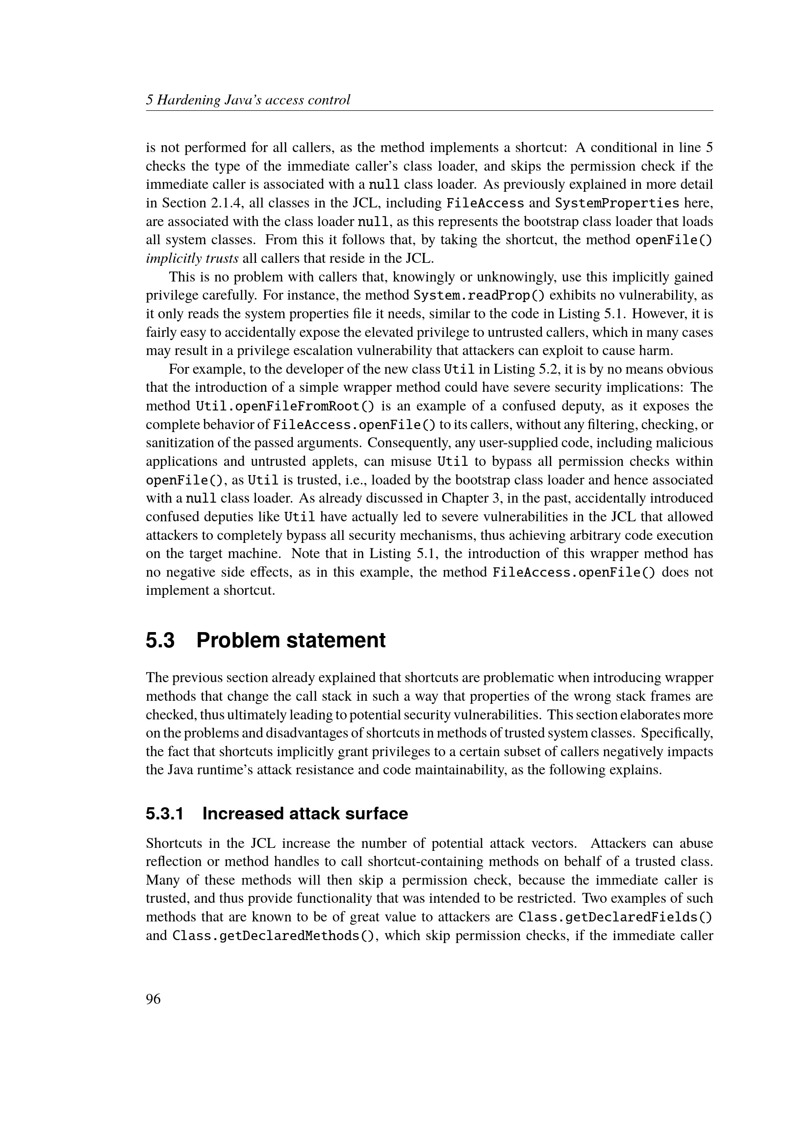 Hardening Java's access control
