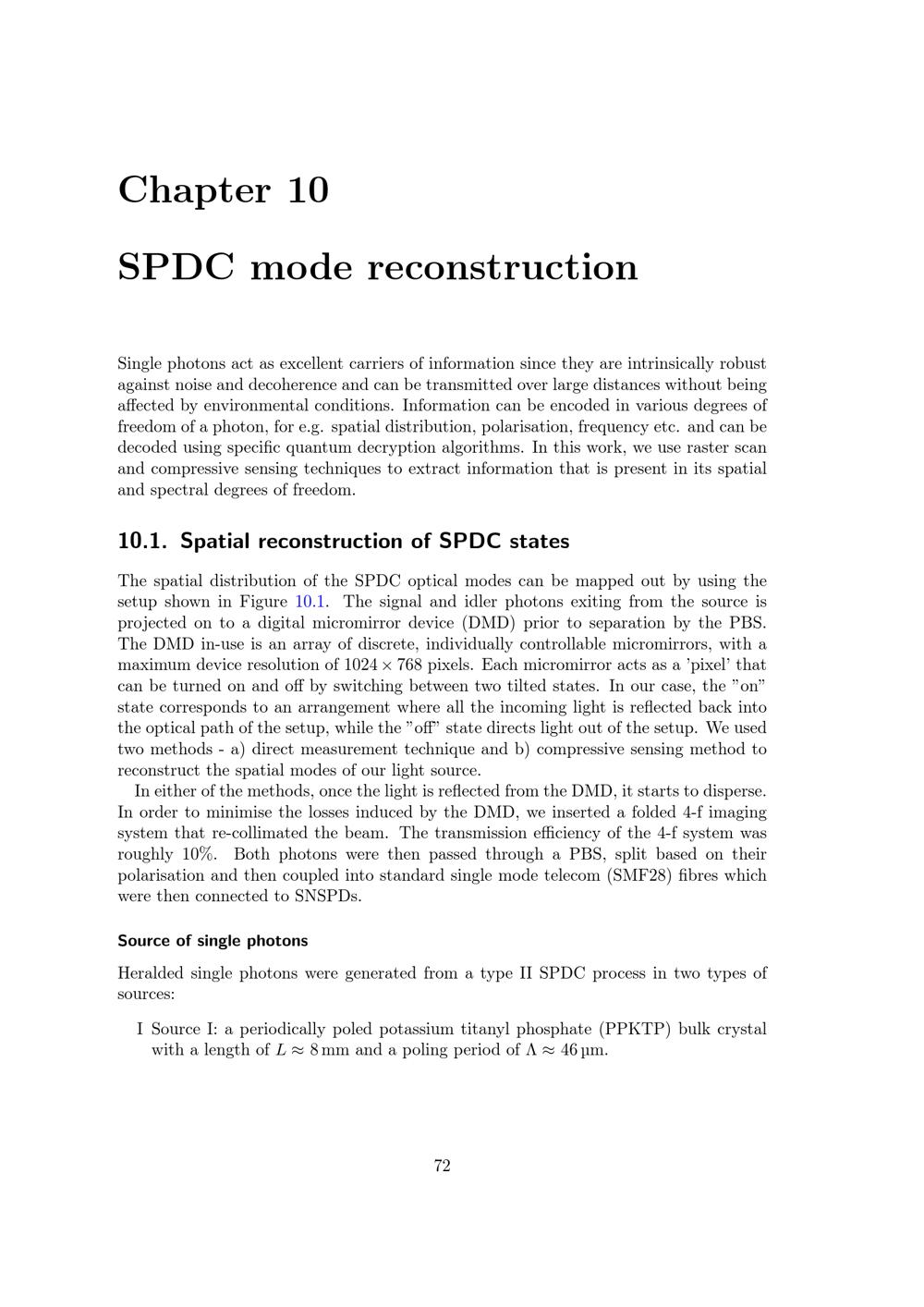 SPDC mode reconstruction