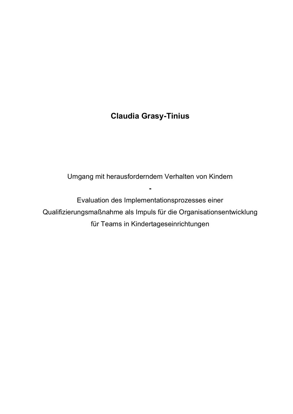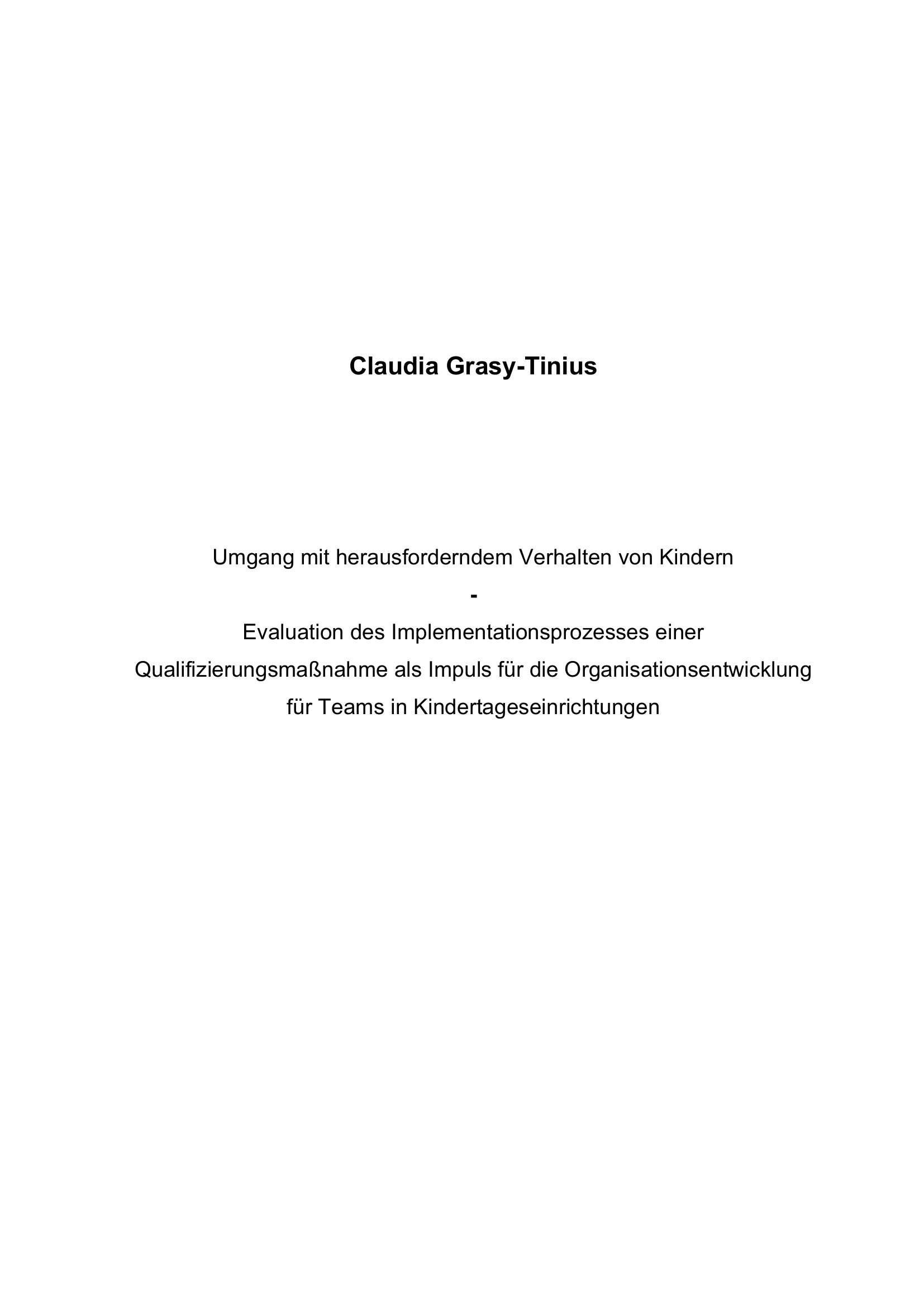 Umgang mit herausforderndem Verhalten von Kindern : Evaluation des Implementationsprozesses einer Qualifizierungsmaßnahme als Impuls für die Organisationsentwicklung für Teams in Kindertageseinrichtungen / Claudia Grasy-Tinius ; Erstgutachter: Prof. Dr. Timm Albers (Universität Paderborn), Zweitgutachter: Prof. Dr. Klaus Fröhlich-Gildhoff (Evangelische Hochschule Freiburg)