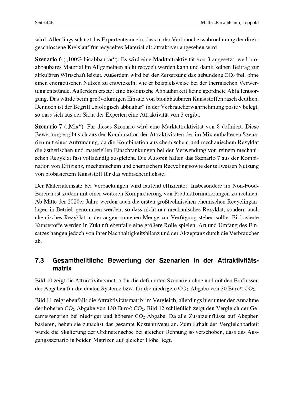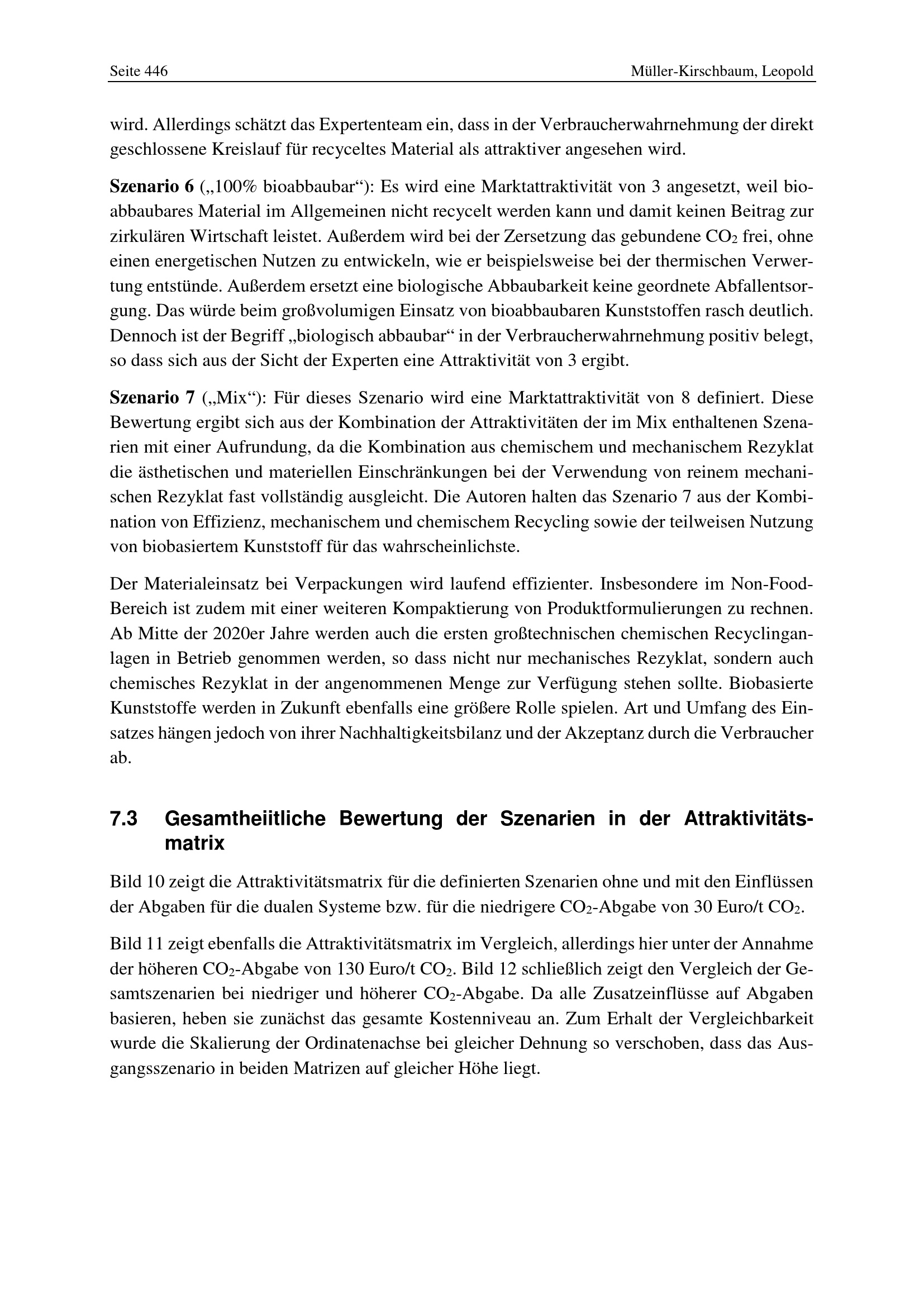 7.3 Gesamtheiitliche Bewertung der Szenarien in der Attraktivitätsmatrix