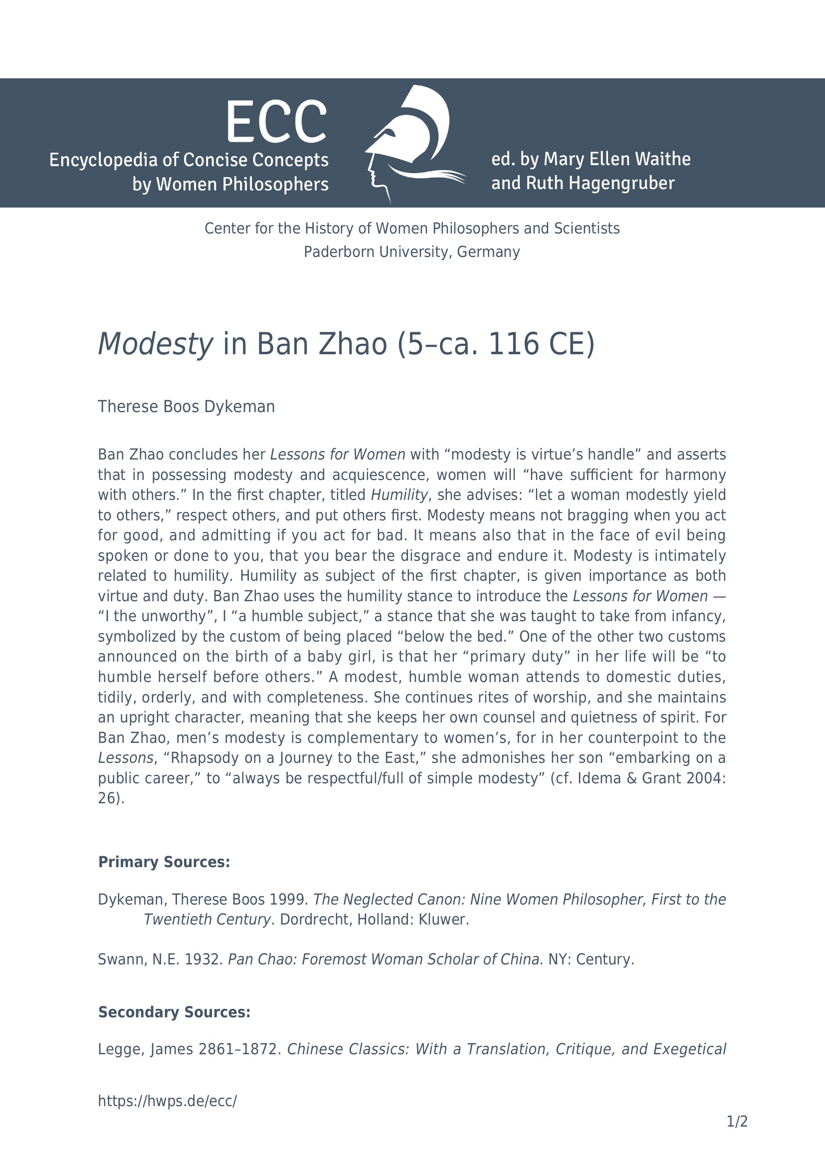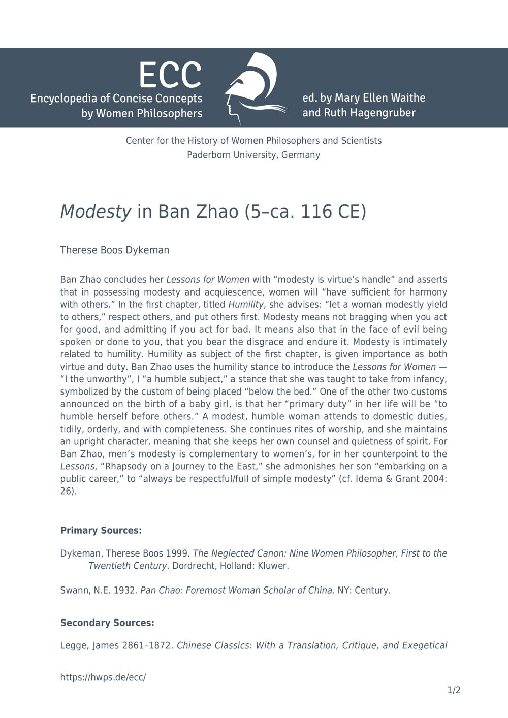Modesty in Ban Zhao (5-ca. 116 CE) / Therese Boos Dykeman