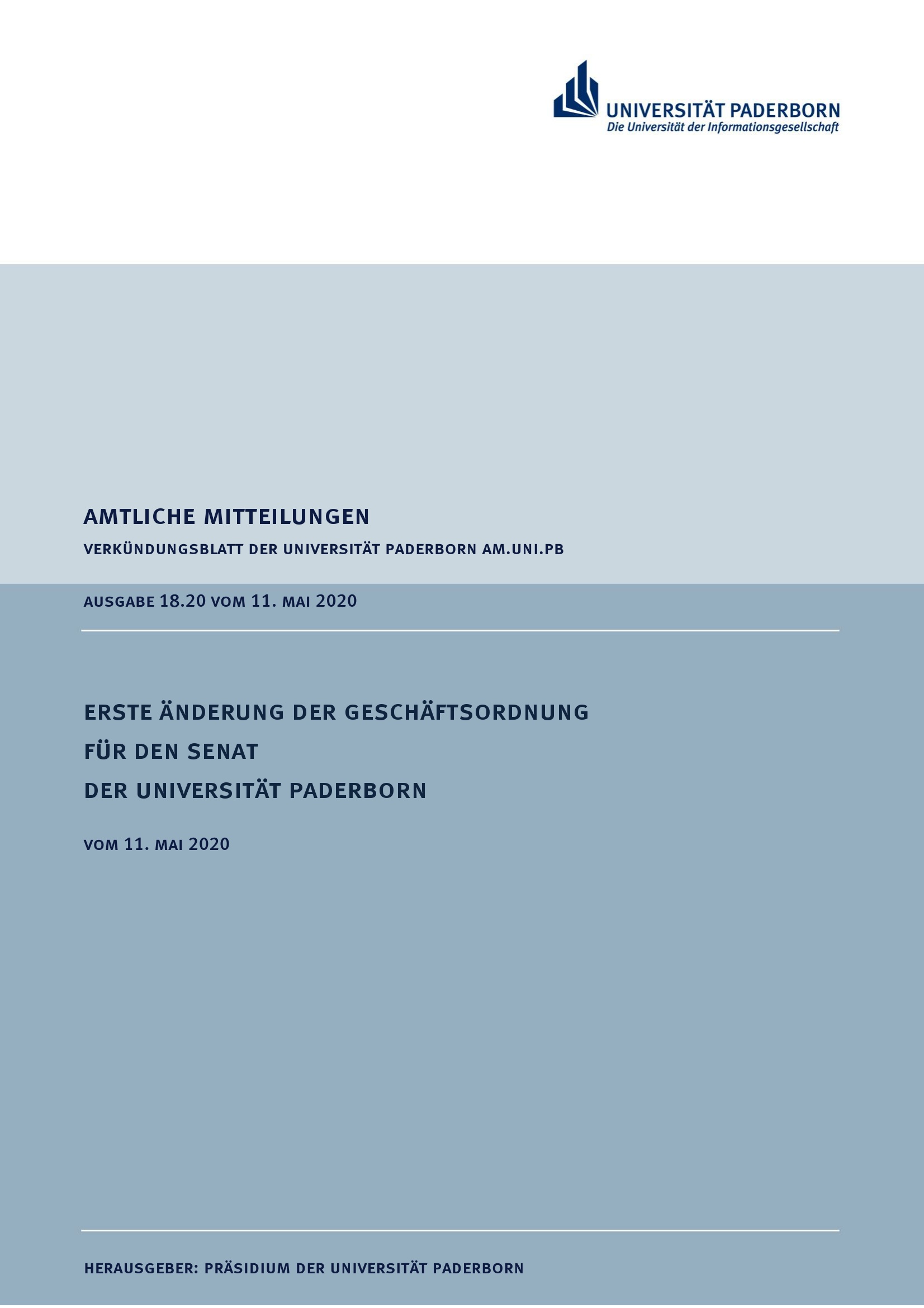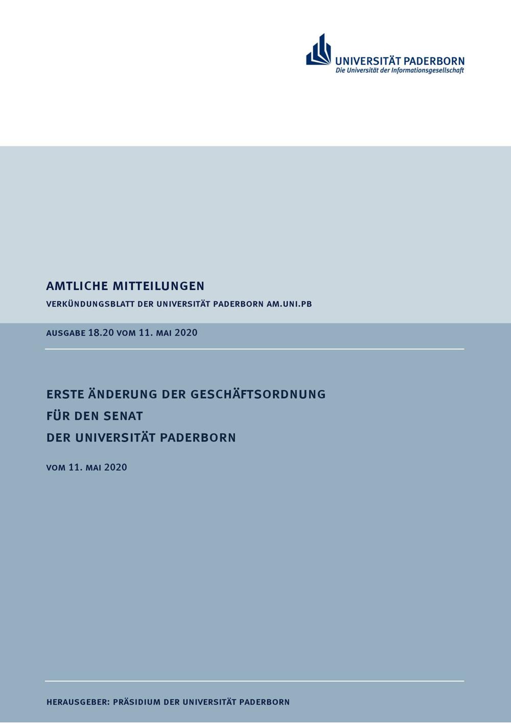 Erste Änderung der Geschäftsordnung für den Senat der Universität Paderborn : vom 11. Mai 2020