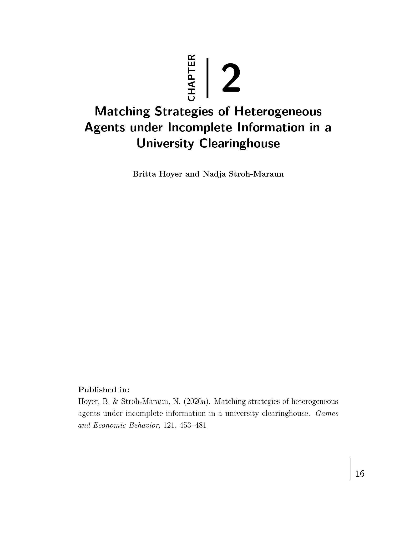 Mechanisms, preferences, and heterogeneity in matching markets / vorgelegte Dissertation von Nadja Stroh-Maraun ; [Erstgutachter Prof. Dr. Claus-Jochen Haake, Zeitgutachter: Prof. Dr. Burkhard Hehenkamp]