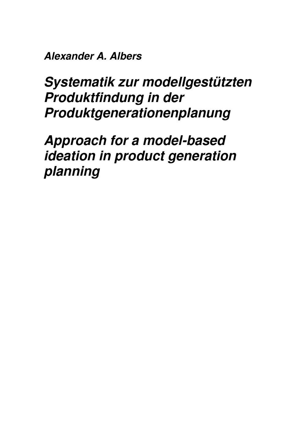 Systematik zur modellgestützten Produktfindung in der Produktgenerationenplanung / von Dipl.-Ing. Alexander A. Albers ; Referent: Prof. Dr.-Ing. Jürgen Gausemeier, Korreferent: Prof. Dr.-Ing. Roman Dumitrescu, Korreferent: Dr. ir. G. Maarten Bonnema