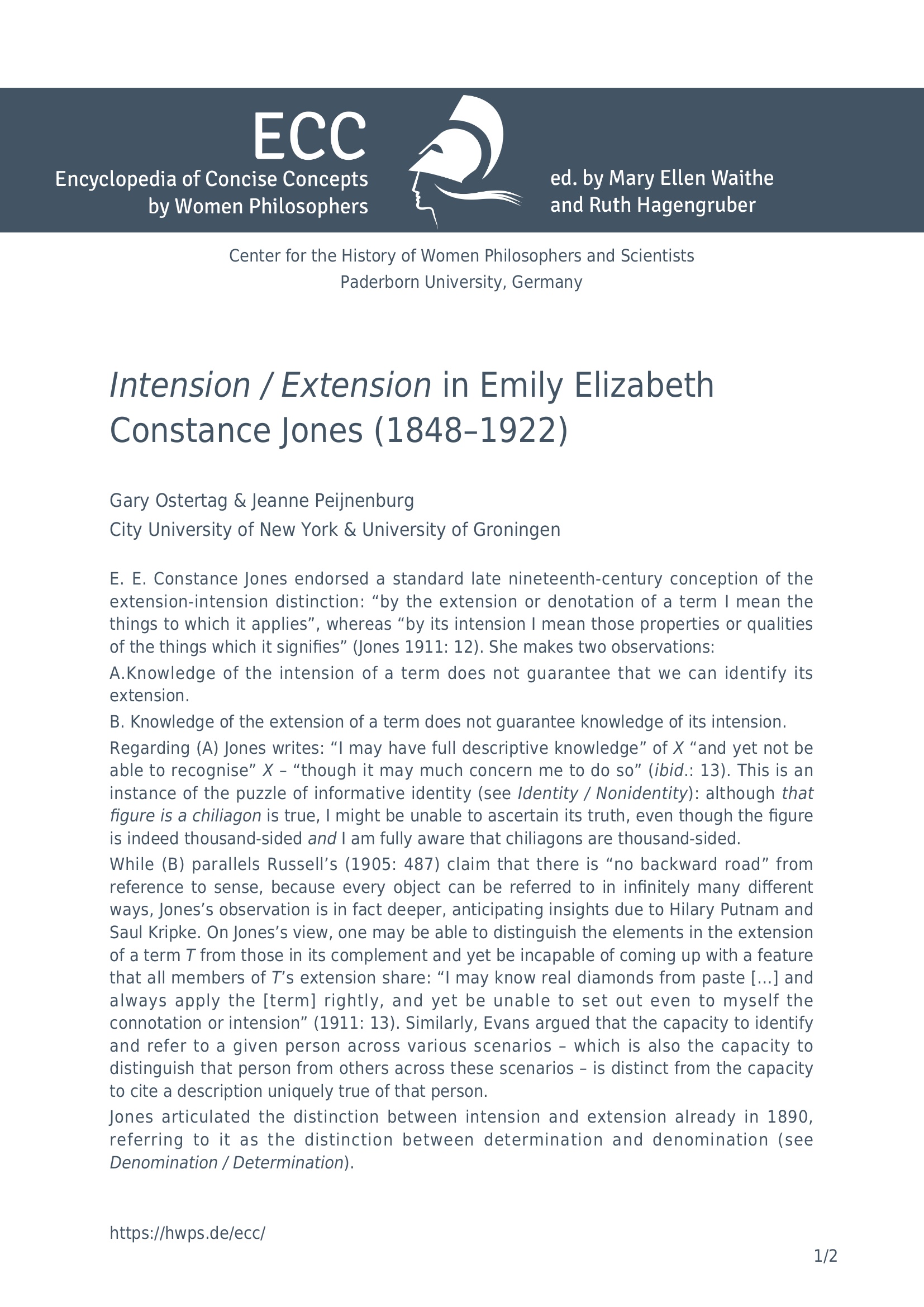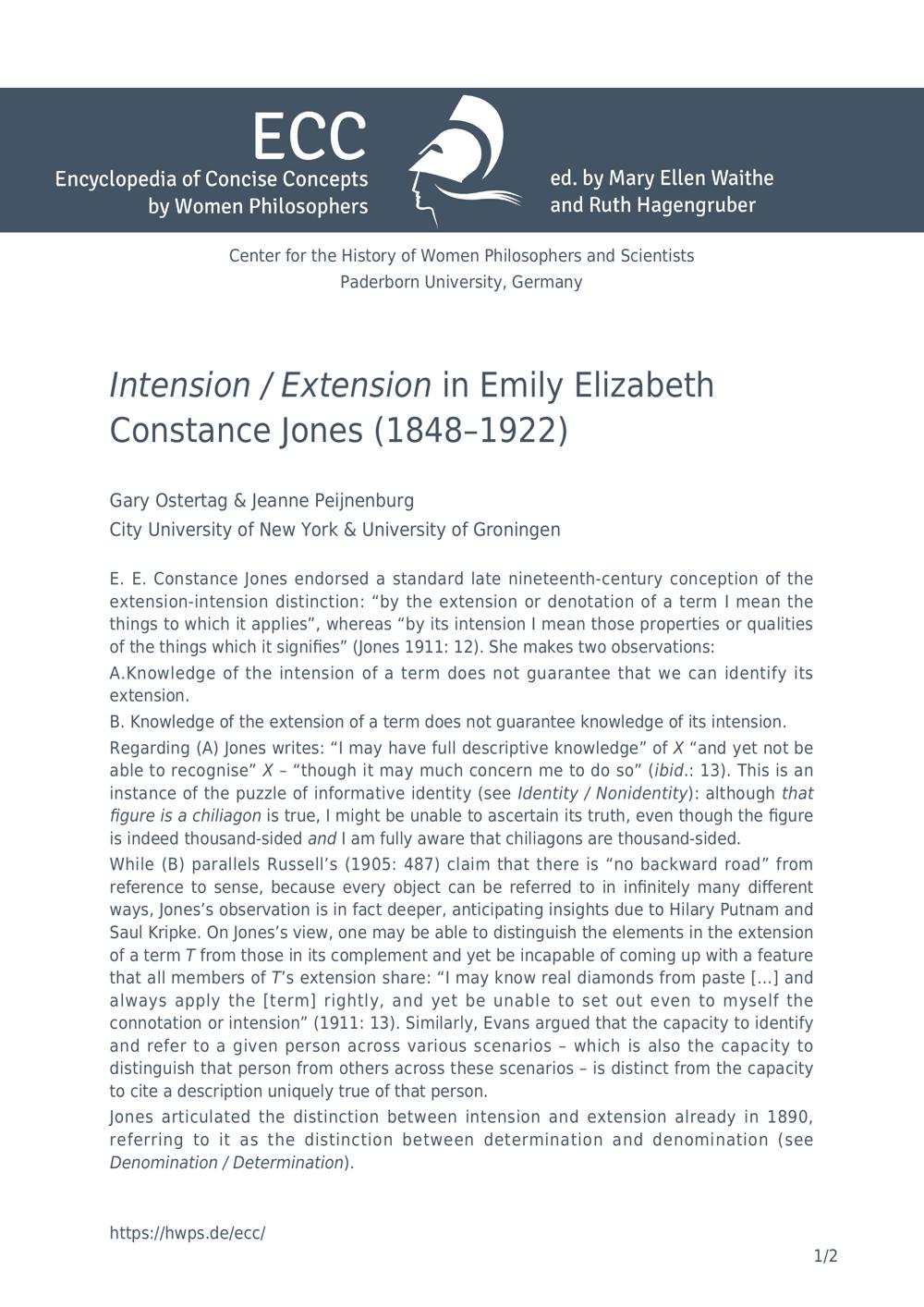 Intension / Extension in Emily Elizabeth Constance Jones (1848-1922) / Gary Ostertag & Jeanne Peijnenburg (City University of New York & University of Groningen)