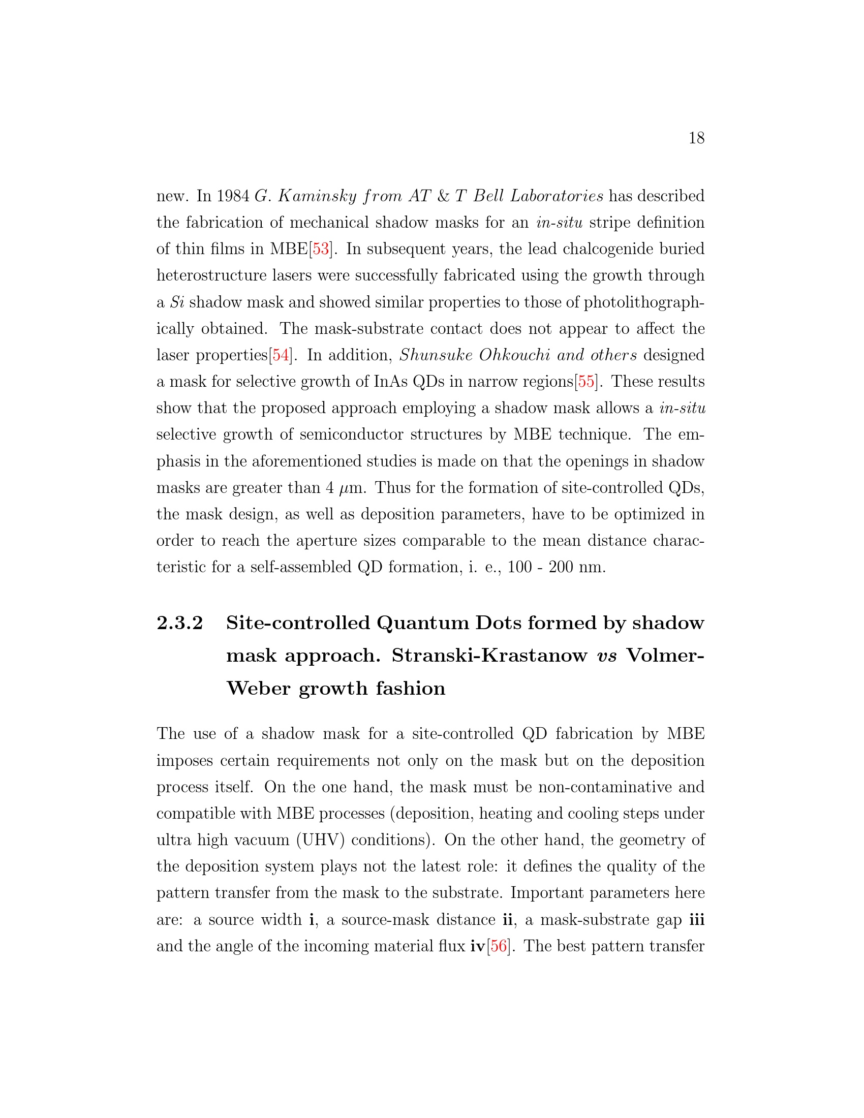 Site-controlled Quantum Dots formed by shadow mask approach. Stranski-Krastanow vs[...]