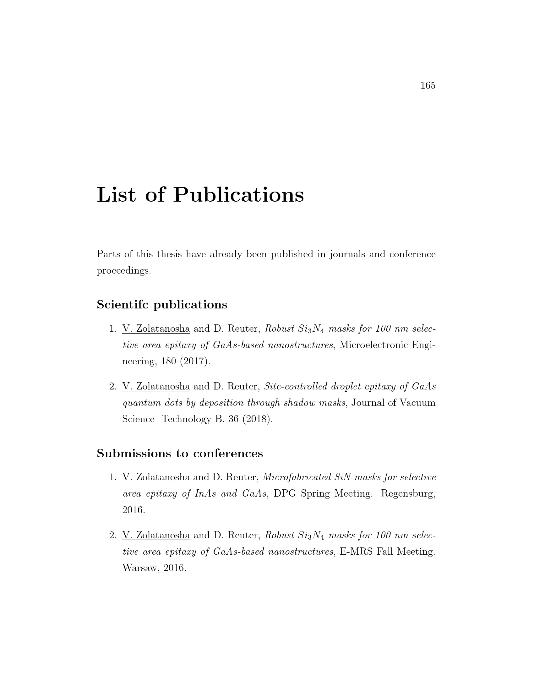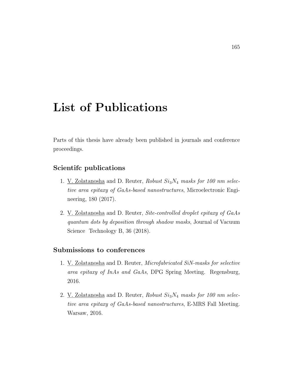 Site-controlled nanostructure fabrication by selective area epitaxy through shadow masks / by Viktoriya Zolatanosha ; [1. Reviewer: Prof. Dr. Dirk Reuter, 2. Reviewer: Prof. Dr. Cedrik Meier]