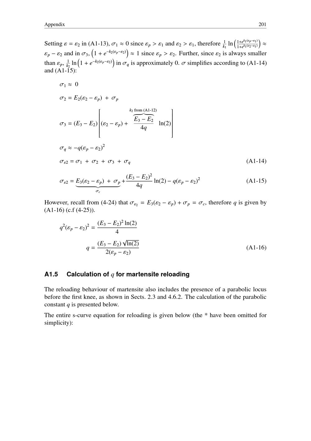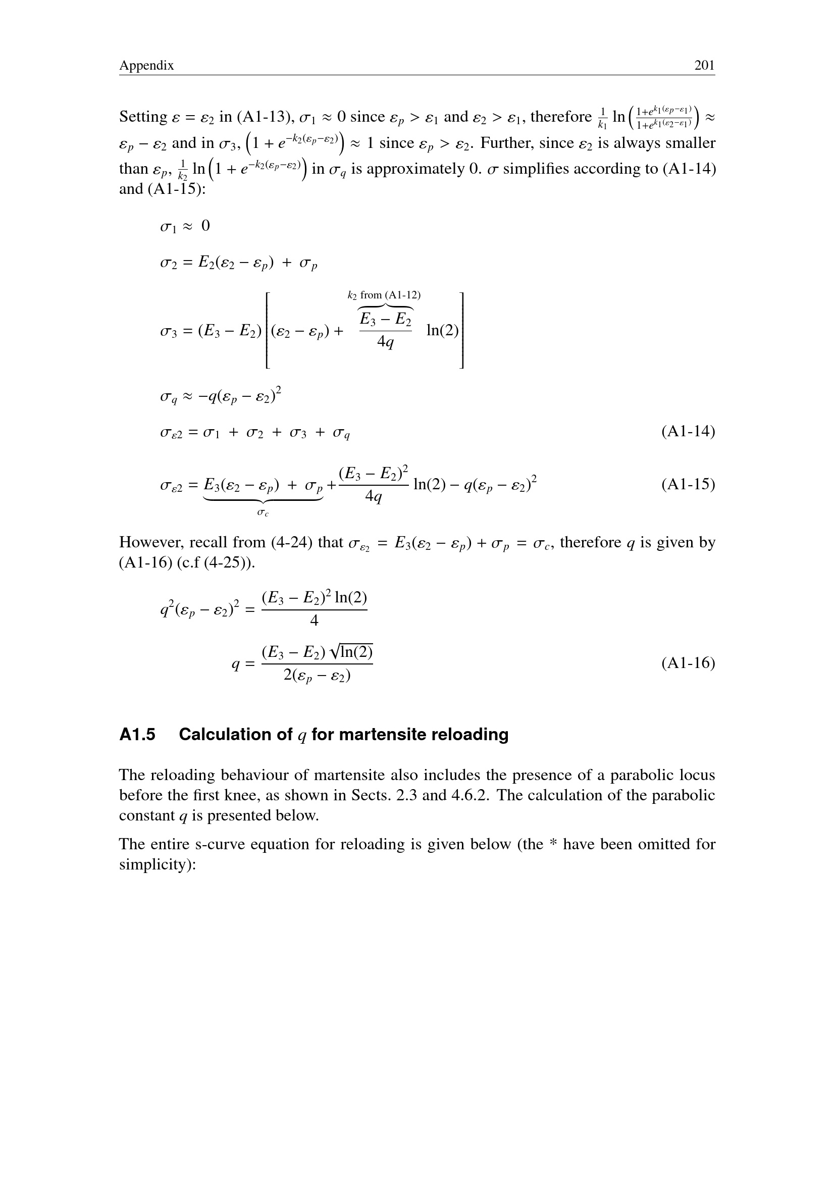 Calculation of q for martensite reloading