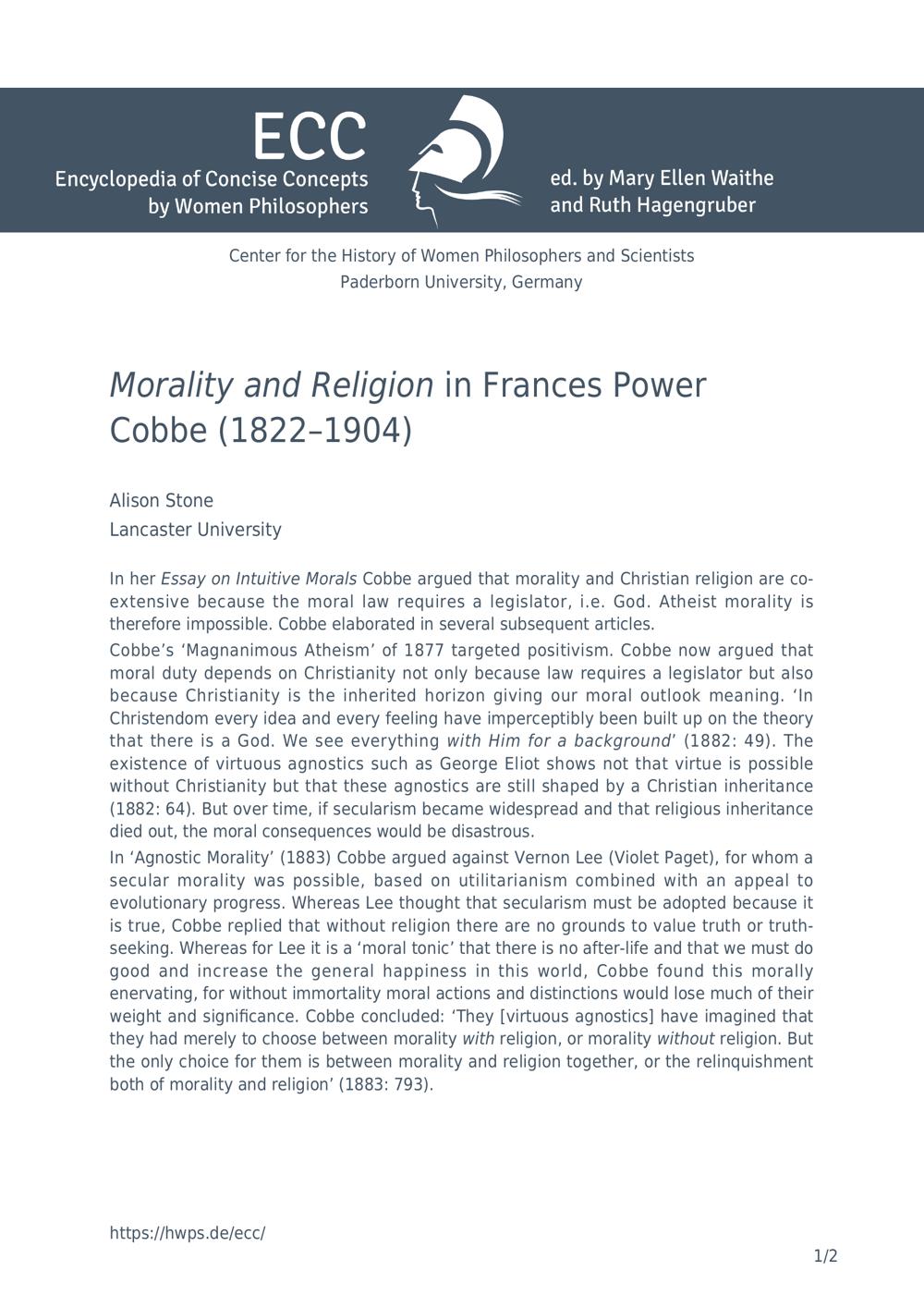 Morality and Religion in Frances Power Cobbe (1822-1904) / Alison Stone (Lancaster University)
