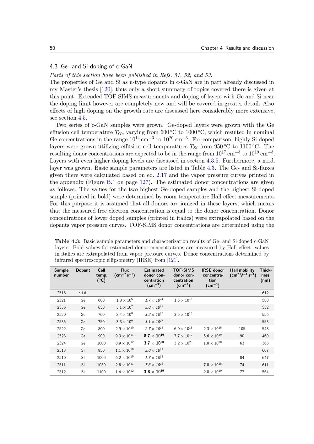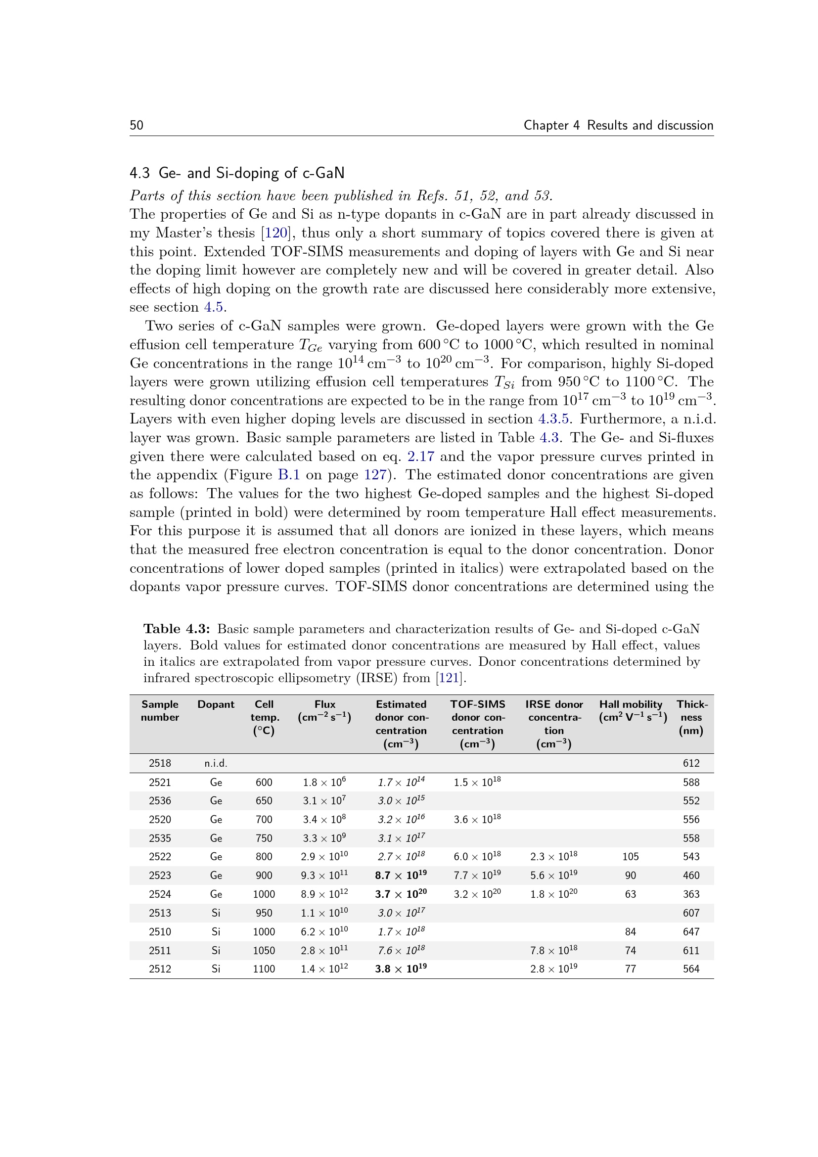 4.3 Ge- and Si-doping of c-GaN