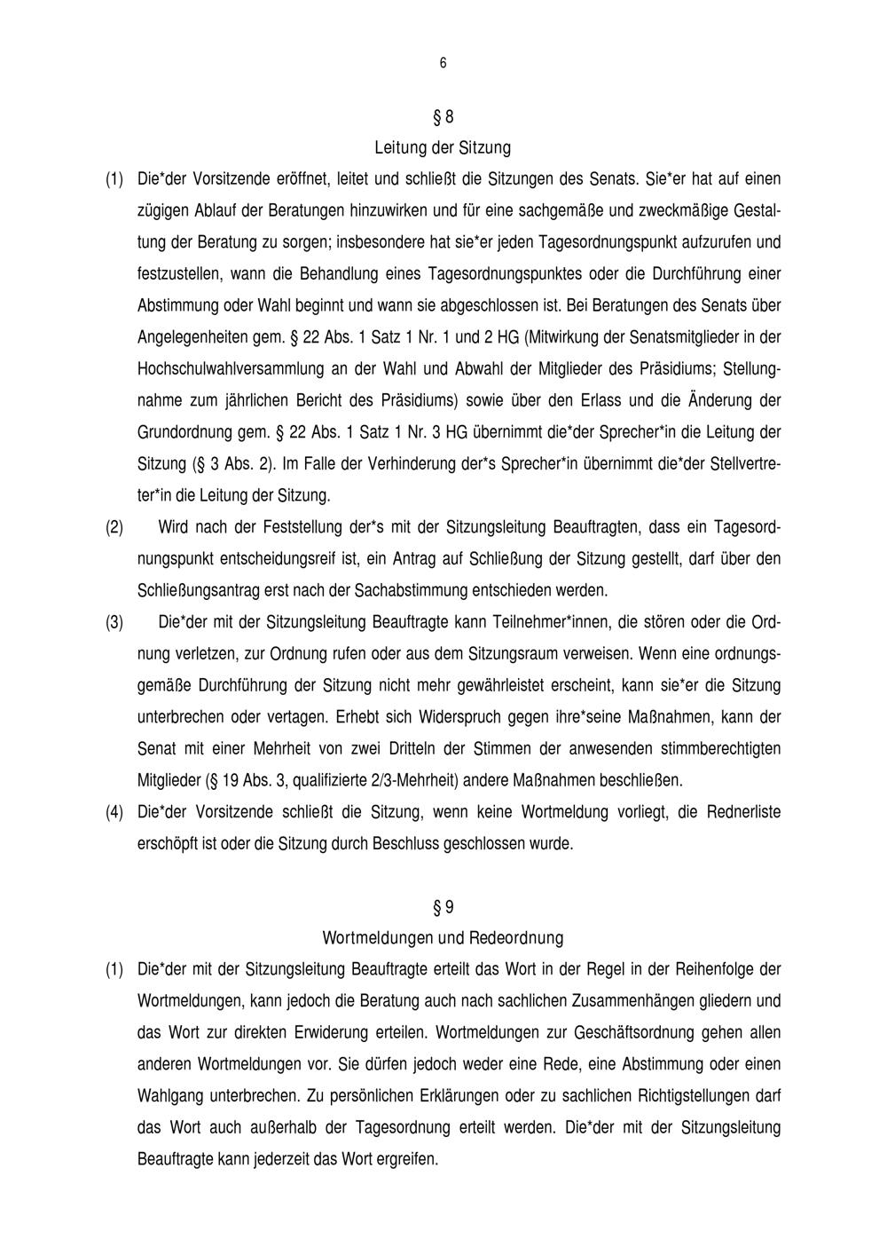 § 8 Leitung der Sitzung