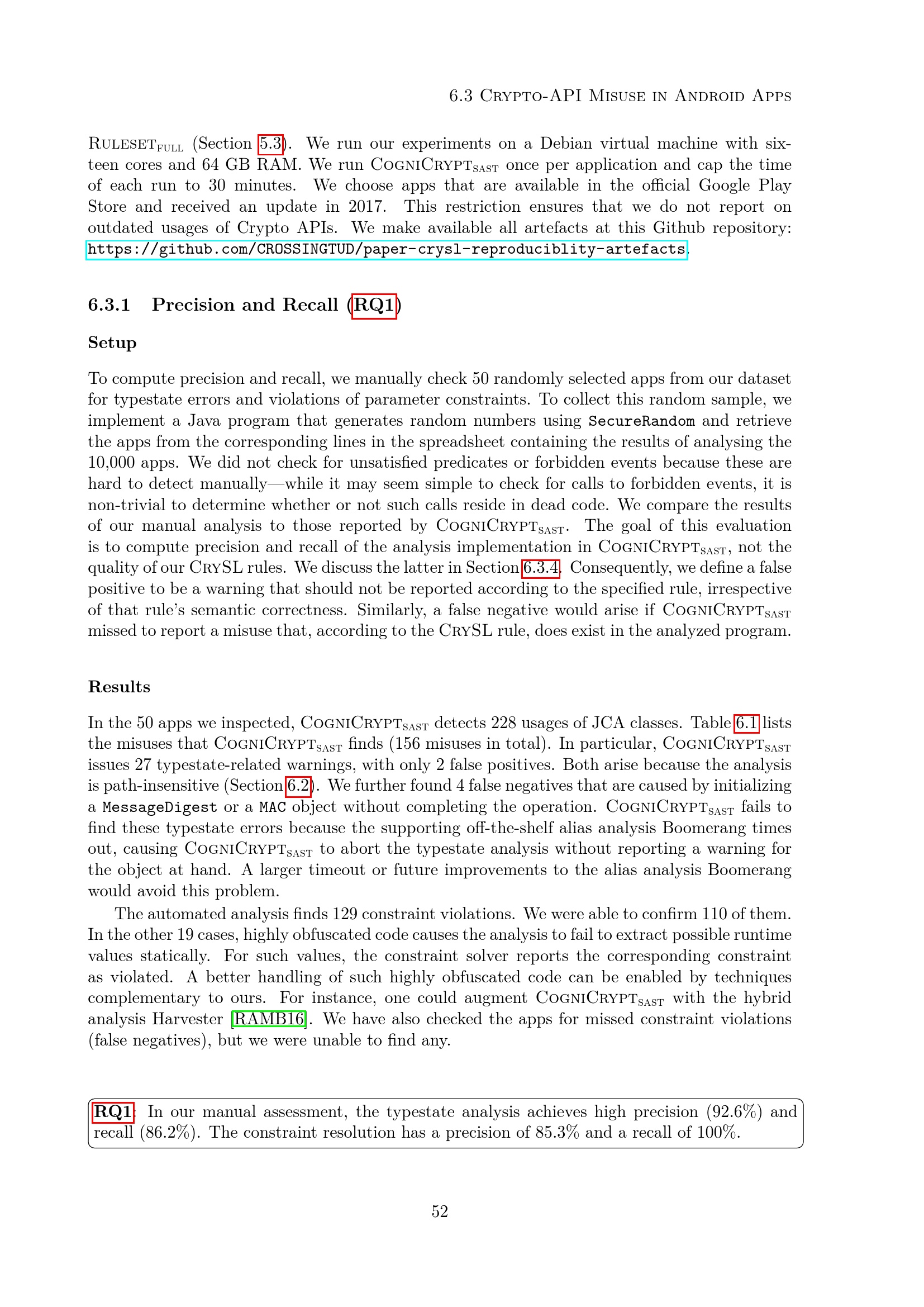 Precision and Recall (RQ1)