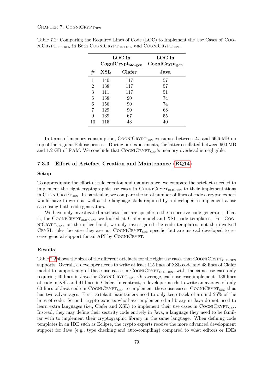 Effort of Artefact Creation and Maintenance (RQ14)
