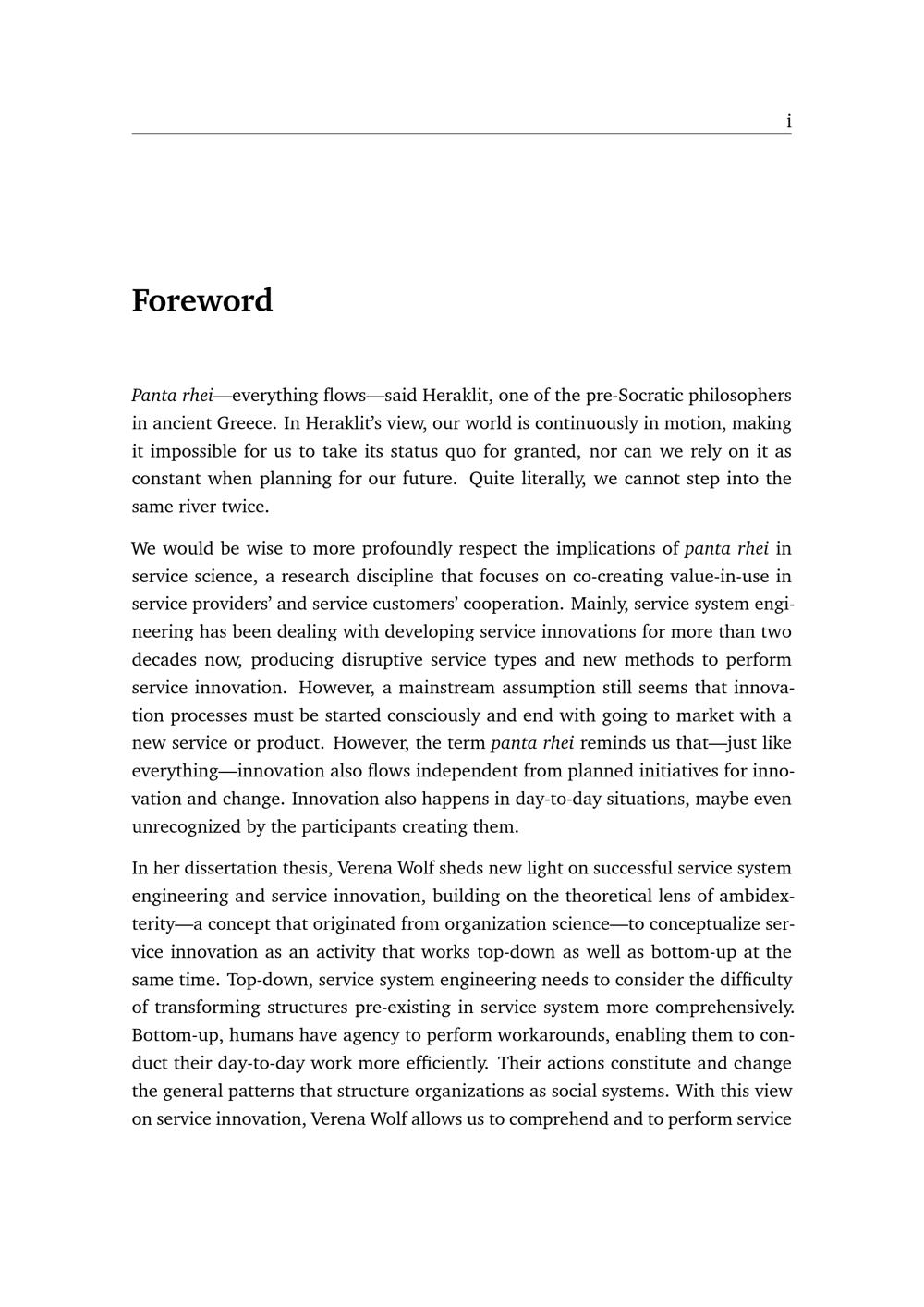 Service system innovation: an ambidexterity perspective / von Verena Wolf ; Gutachter: Prof. Dr. Daniel Beverungen, Prof. Dr. Lauri Wessel