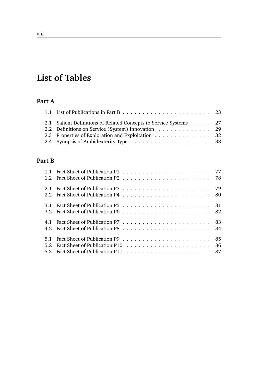 List of Tables