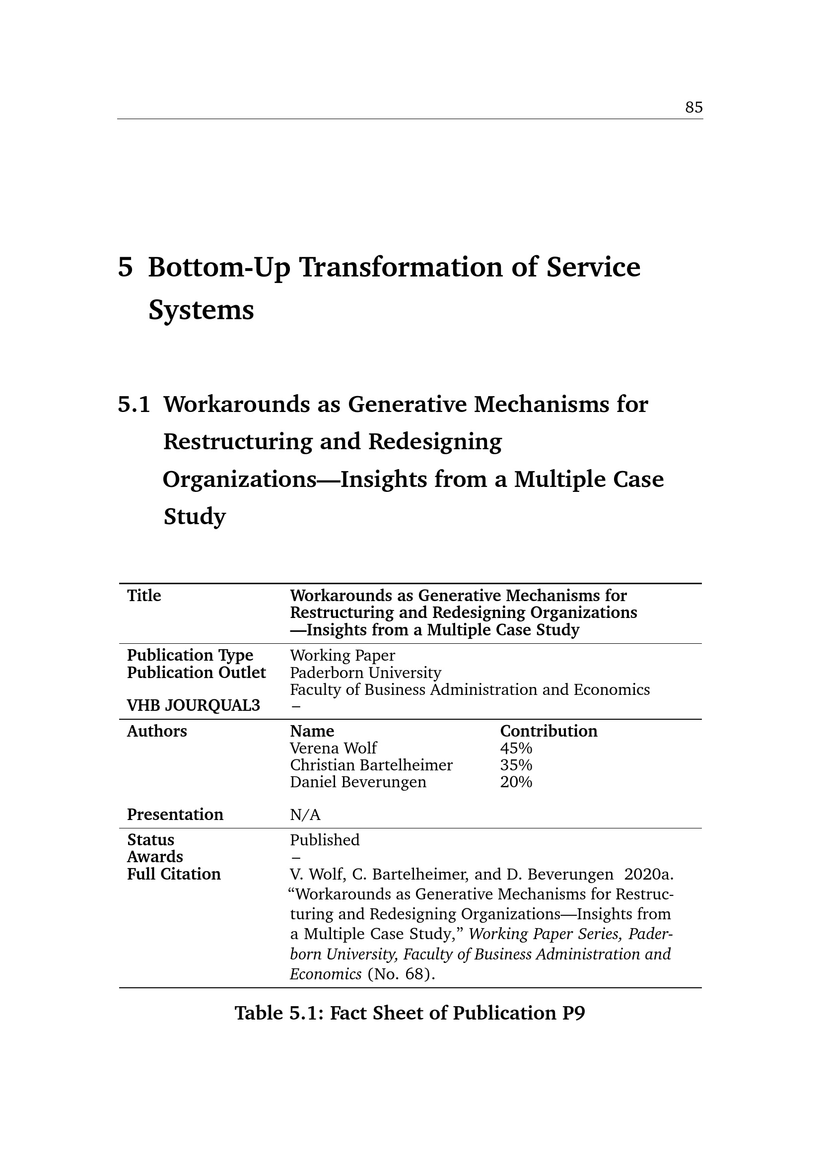 Service system innovation: an ambidexterity perspective / von Verena Wolf ; Gutachter: Prof. Dr. Daniel Beverungen, Prof. Dr. Lauri Wessel