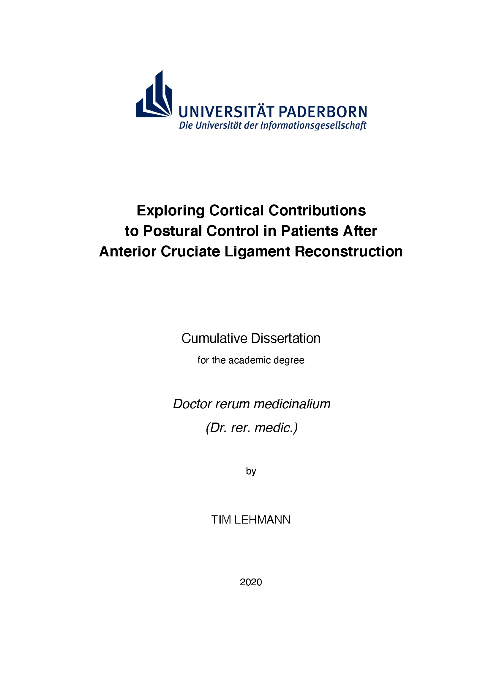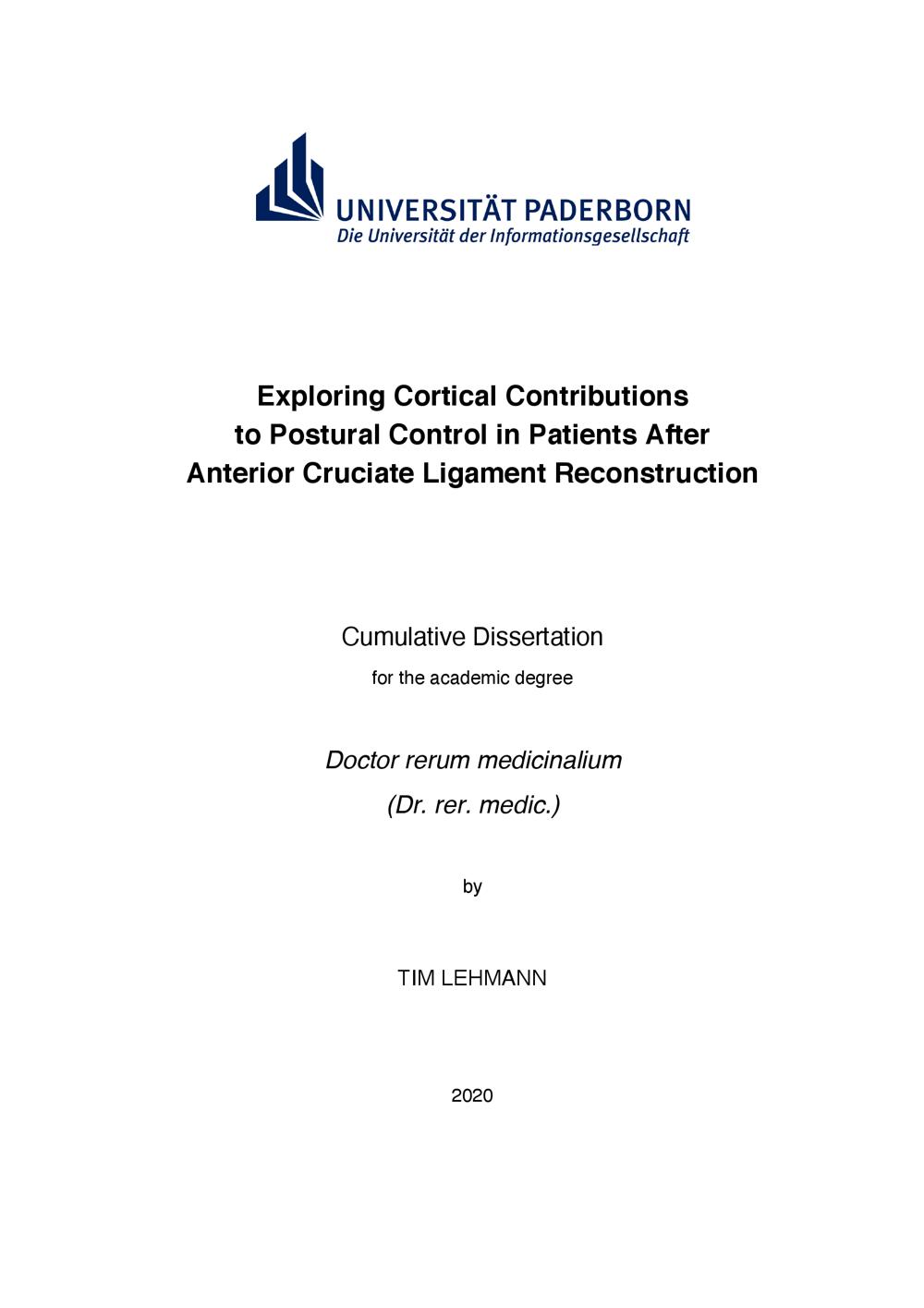 Exploring cortical contributions to postural control in patients after anterior cruciate ligament reconstruction / by Tim Lehmann