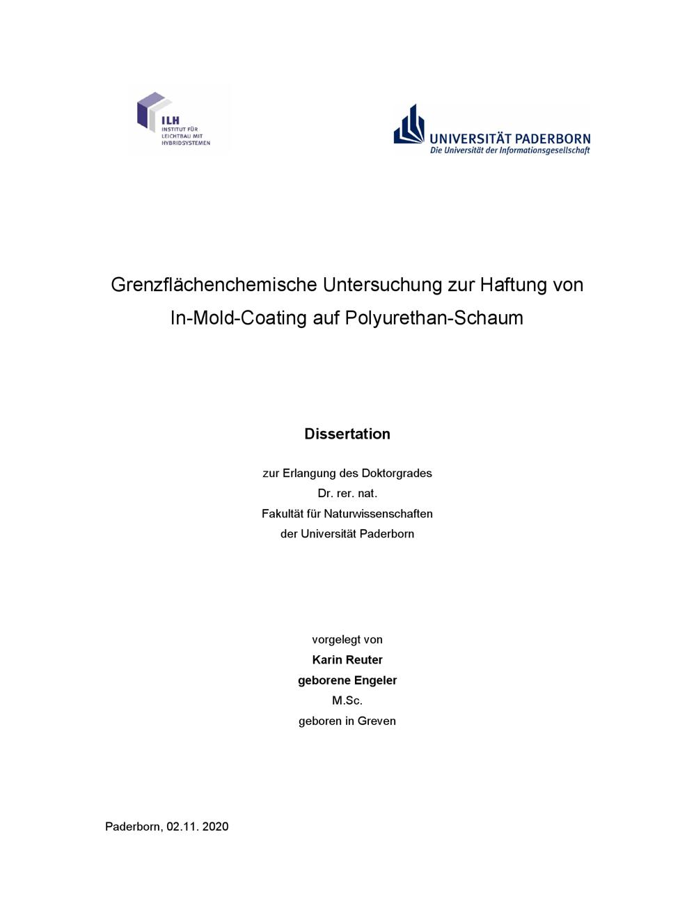 Grenzflächenchemische Untersuchung zur Haftung von In-Mold-Coating auf Polyurethan-Schaum / von Karin Reuter