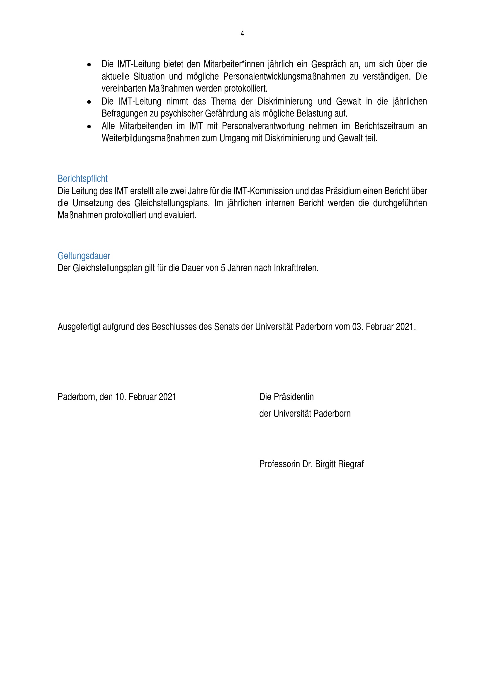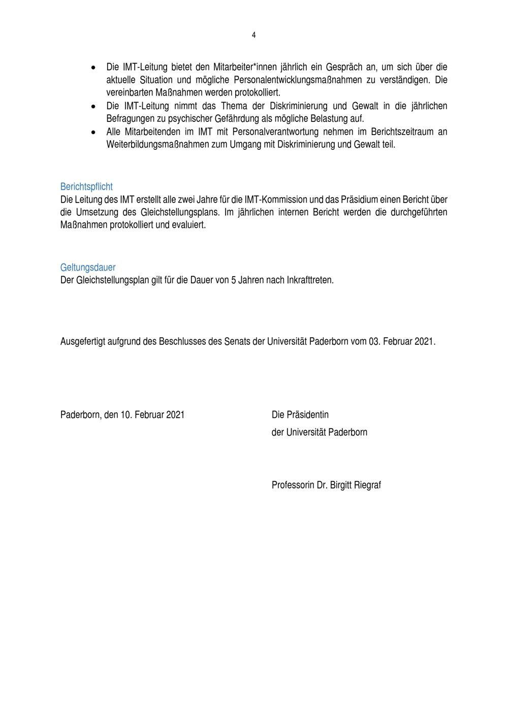 Gleichstellungsplan des Zentrums für Informations- und Medientechnologien (IMT) zur Gleichstellung von Frauen und Männern an der Universität Paderborn : vom 10. Februar 2021