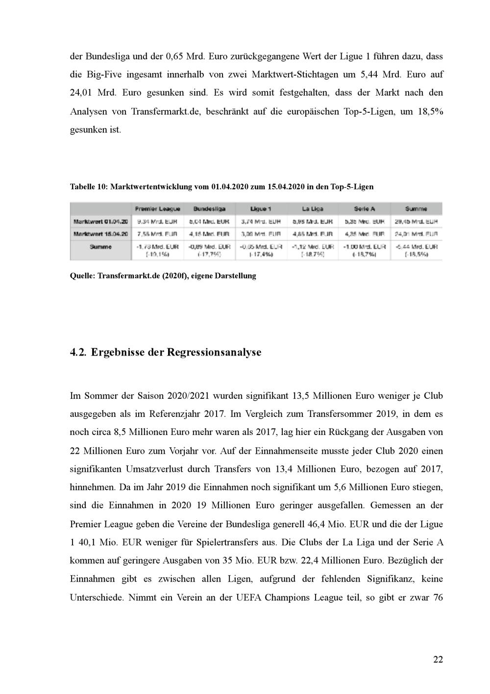 Entwicklung des Marktwerte durch die Covid-19 Pandemie