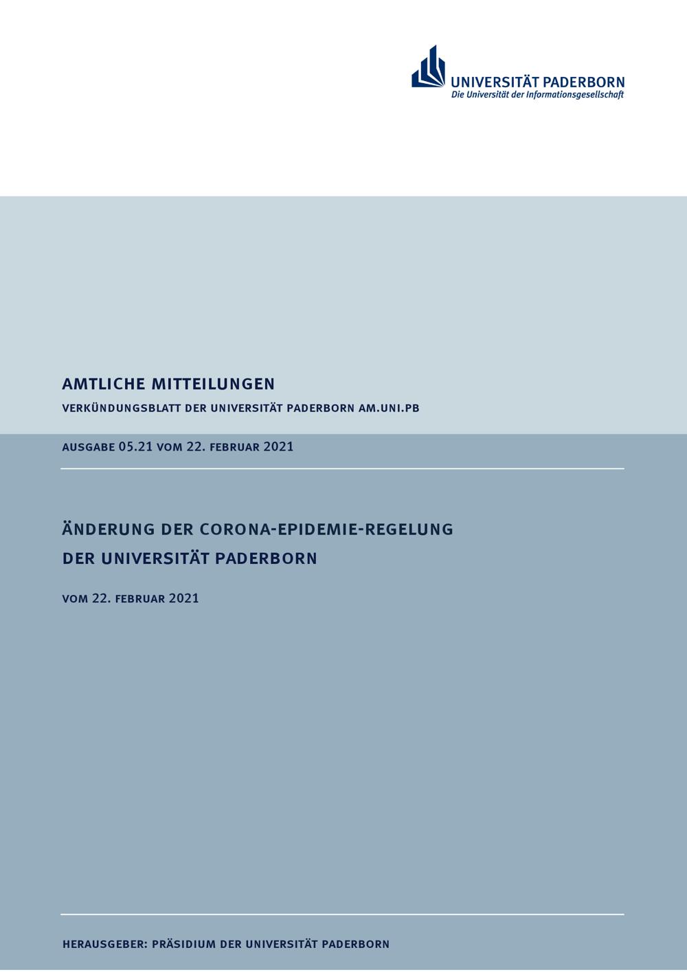 Änderung der Corona-Epidemie-Regelung der Universität Paderborn : vom 22. Februar 2021