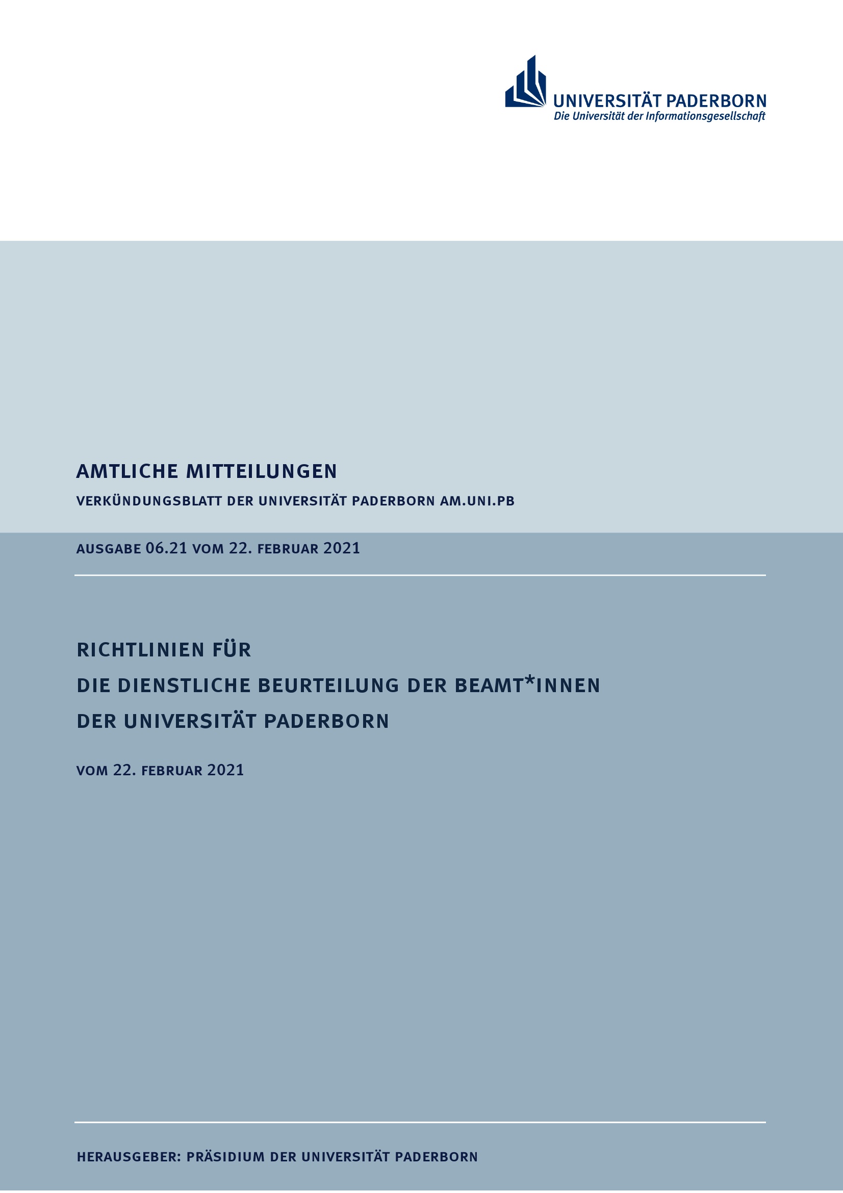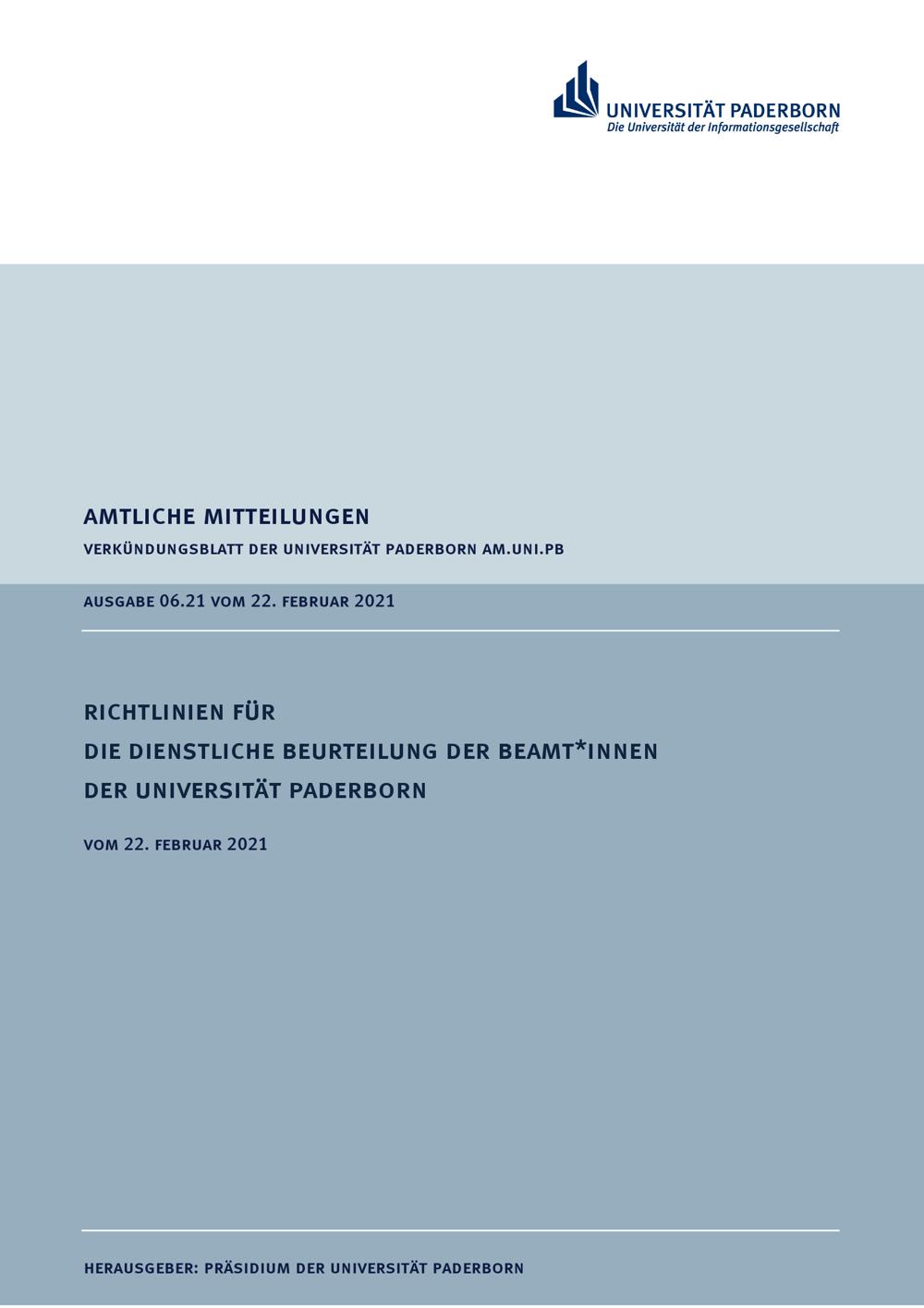 Richtlinien für die dienstliche Beurteilung der Beamt*innen der Universität Paderborn : vom 22. Februar 2021