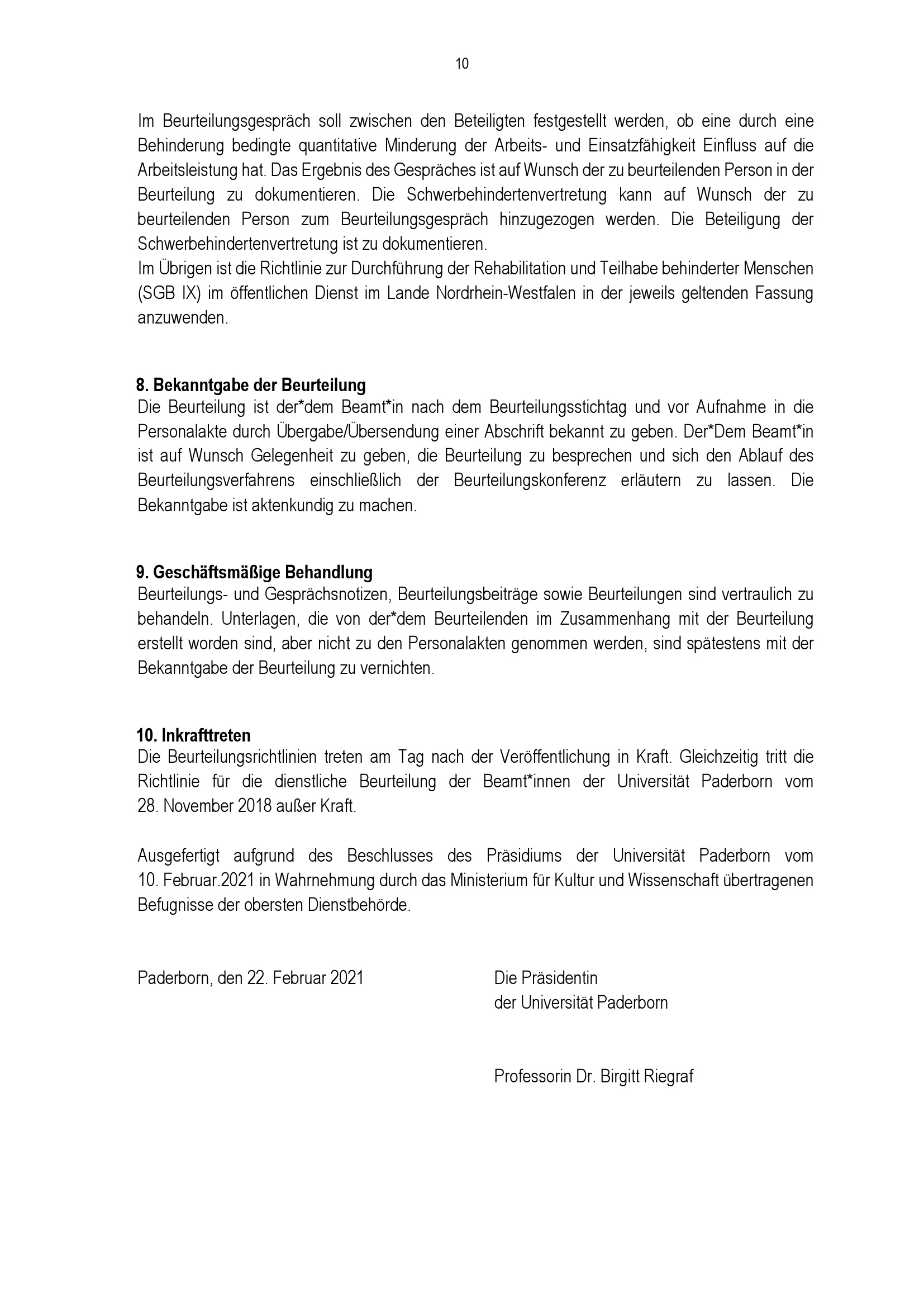 Richtlinien für die dienstliche Beurteilung der Beamt*innen der Universität Pade[...]