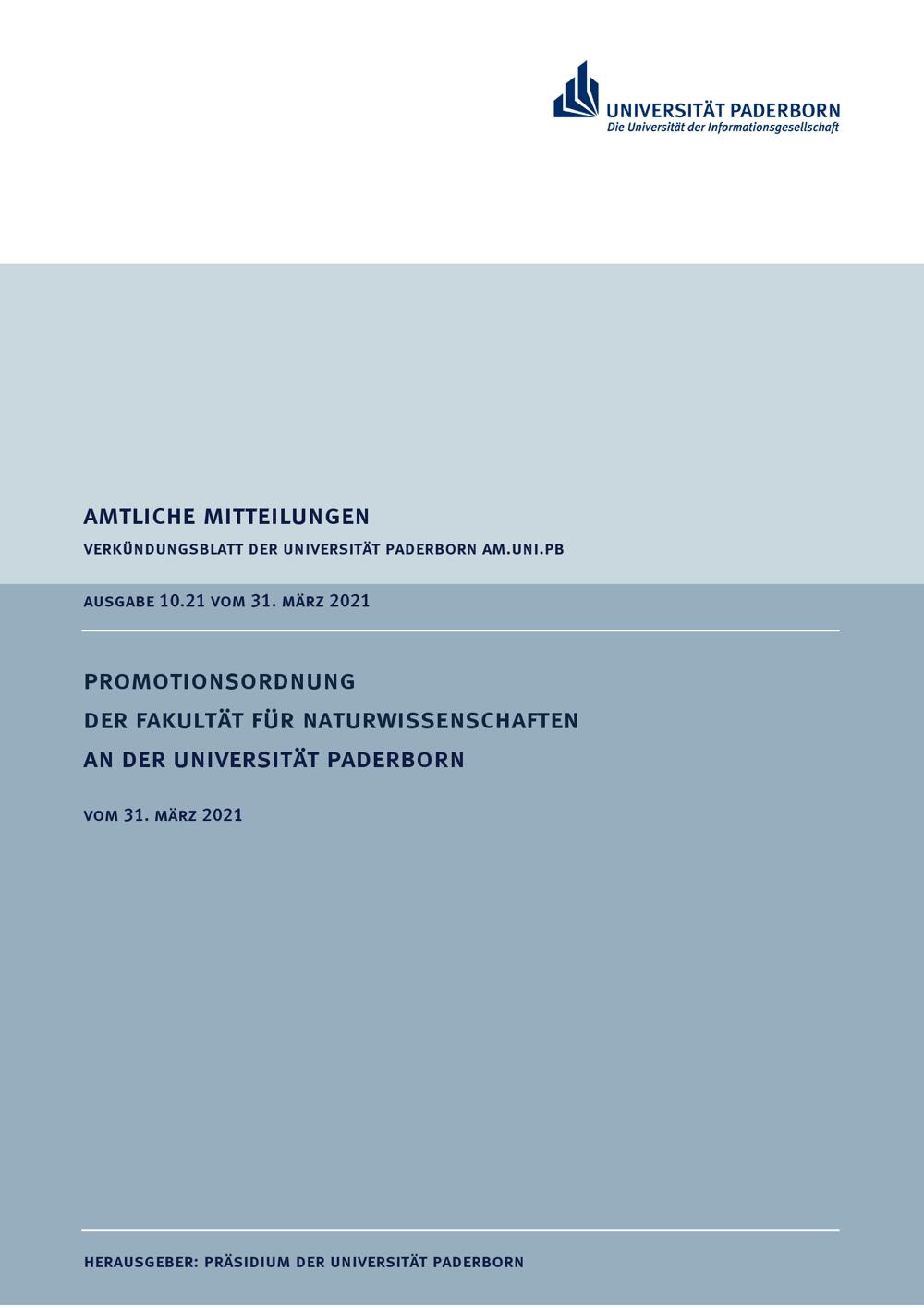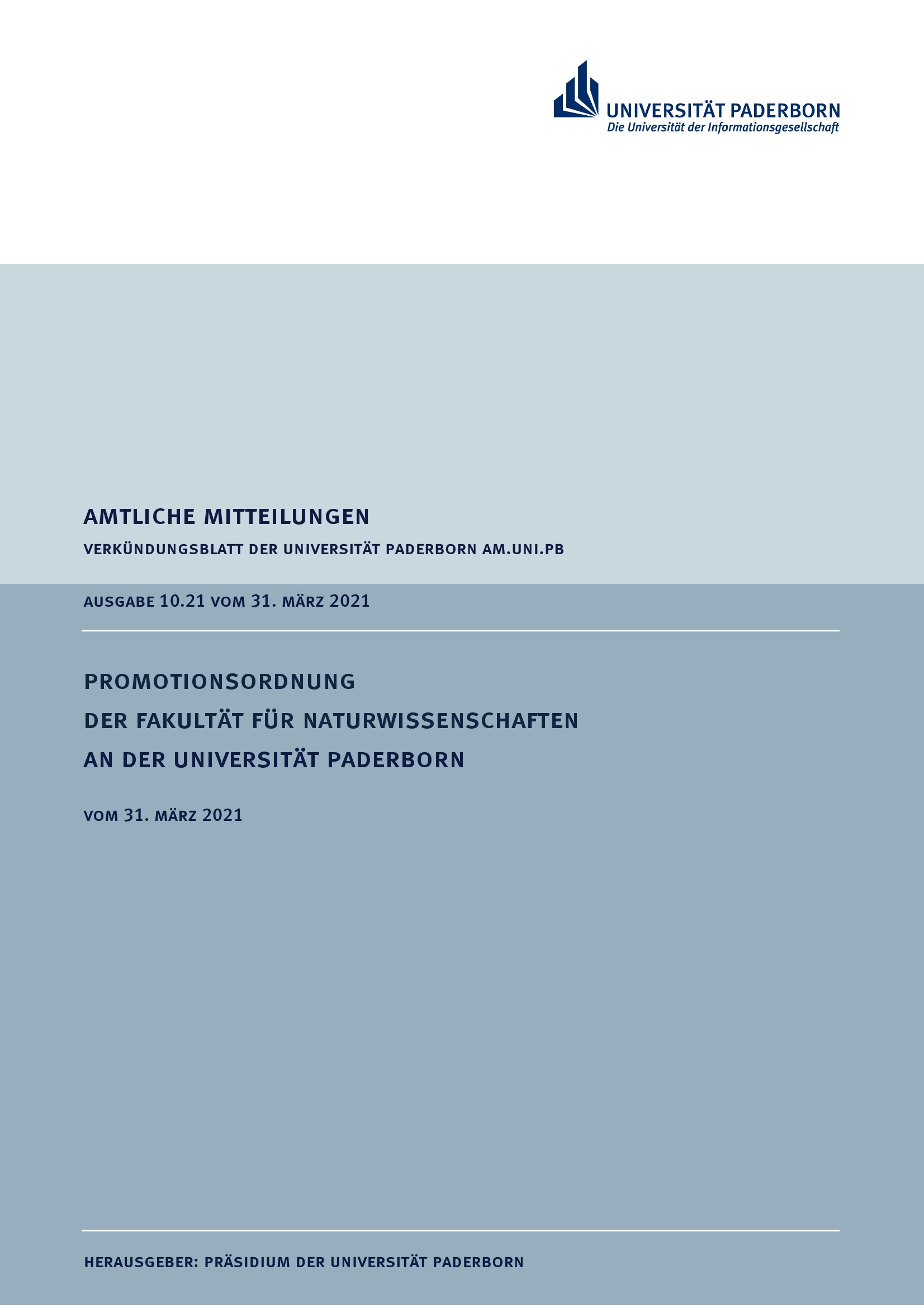 Promotionsordnung der Fakultät für Naturwissenschaften an der Universität Paderborn : vom 31. März 2021