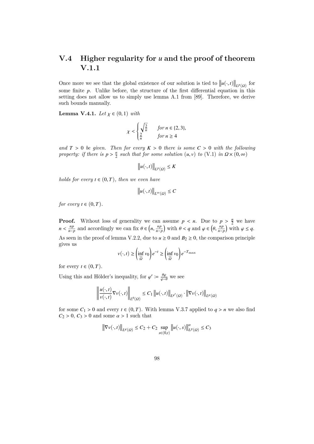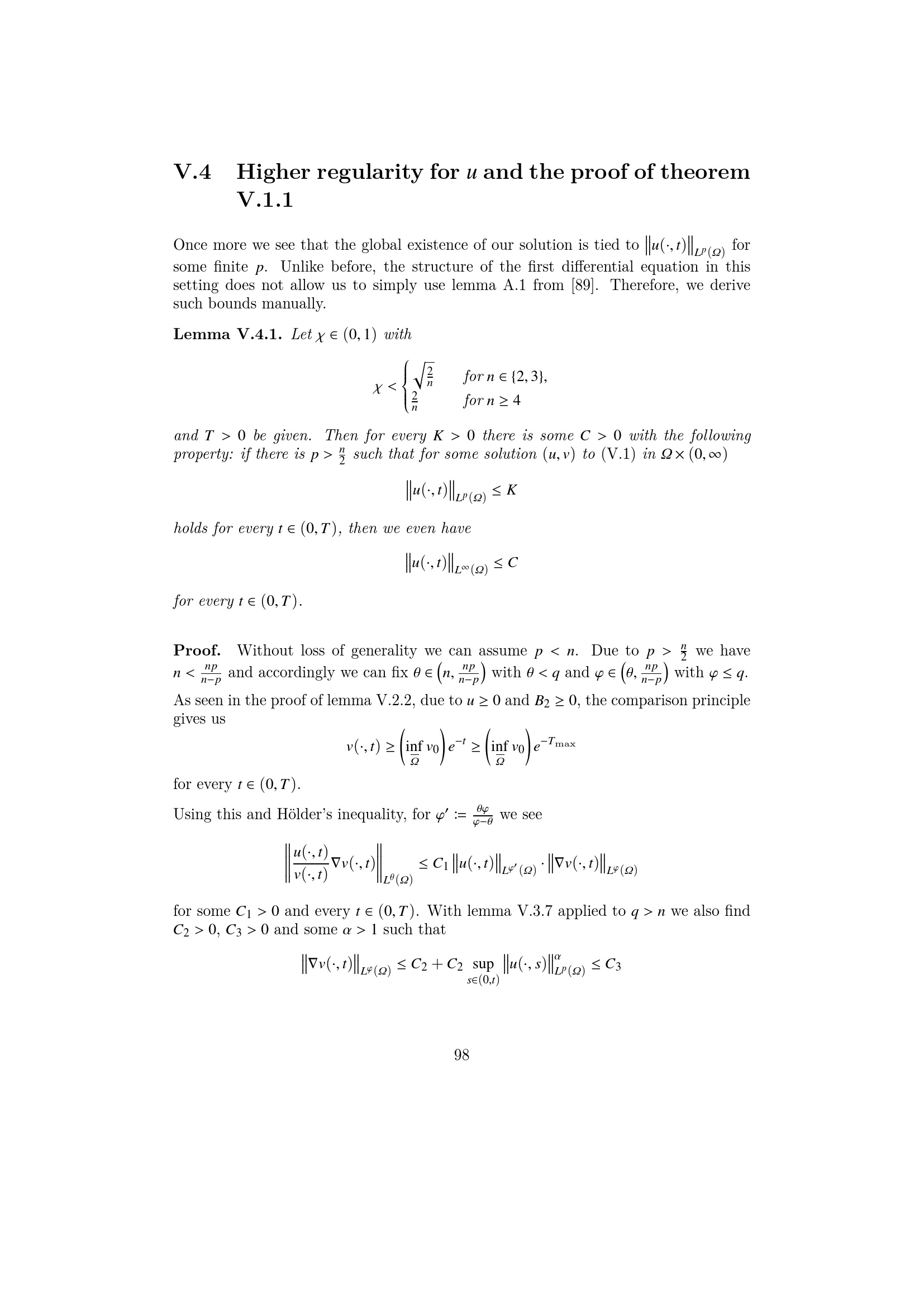 Higher regularity for u and the proof of theorem V.1.1