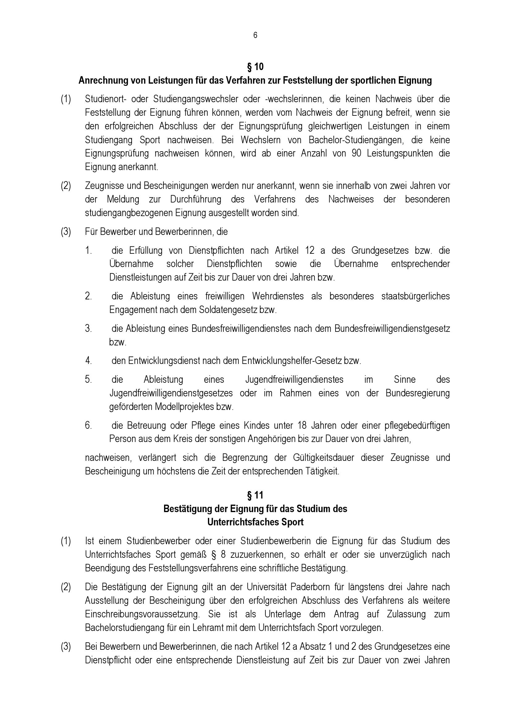 Ordnung zur Feststellung der studiengangsbezogenen Eignung in den Bachelorstudiengängen Lehramt an Grundschulen mit dem Unterrichtsfach Sport, Lehramt an Haupt-, Real-, Sekundar- und Gesamtschulen mit dem Unterrichtsfach Sport, Lehramt an Gymnasien und Gesamtschulen mit dem Unterrichtsfach Sport, Lehramt an Berufskollegs mit dem Unterrichtsfach Sport, Lehramt für Sonderpädagogische Förderung mit dem Unterrichtsfach Sport an der Universität Paderborn : vom 30. April 2021