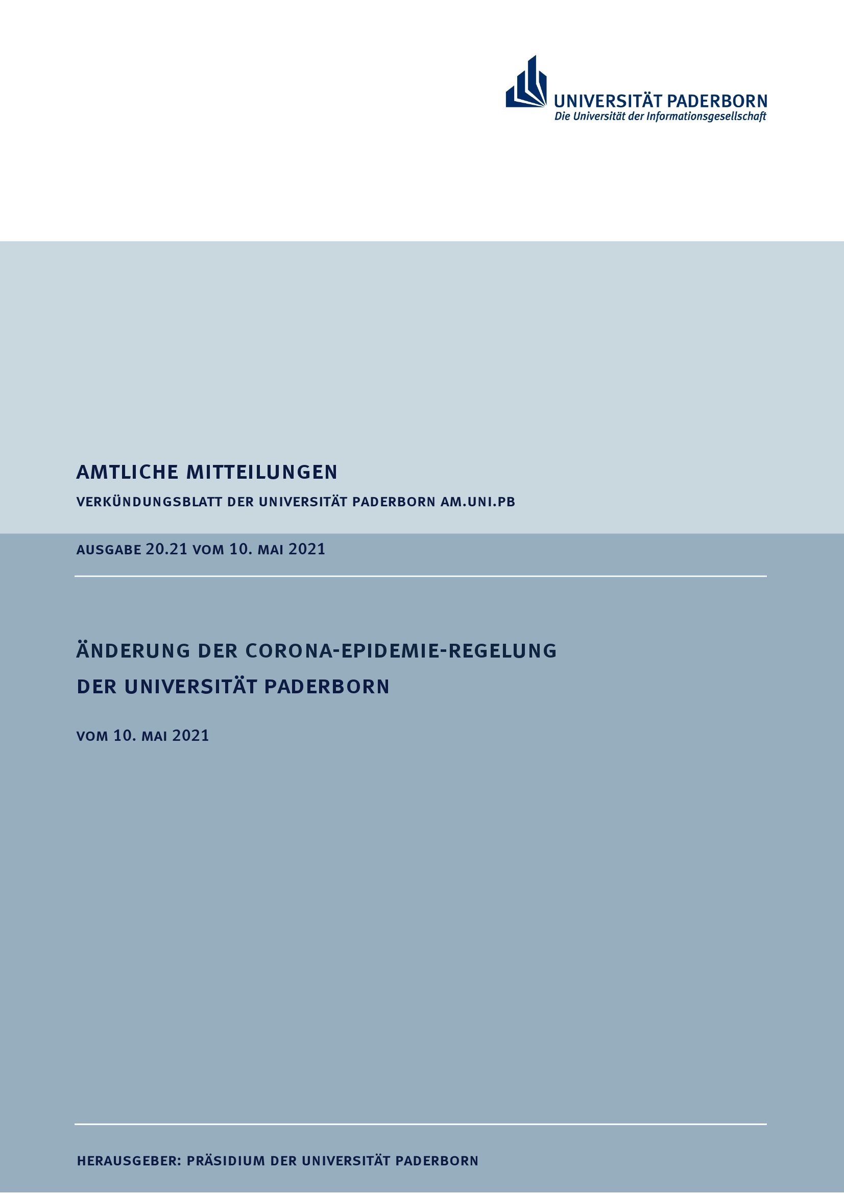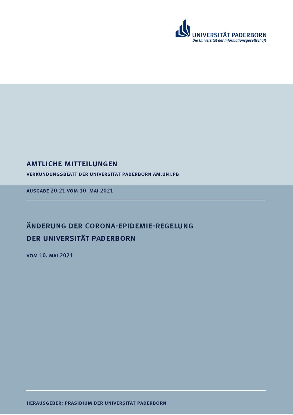 Änderung der Corona-Epidemie-Regelung der Universität Paderborn : vom 10. Mai 2021