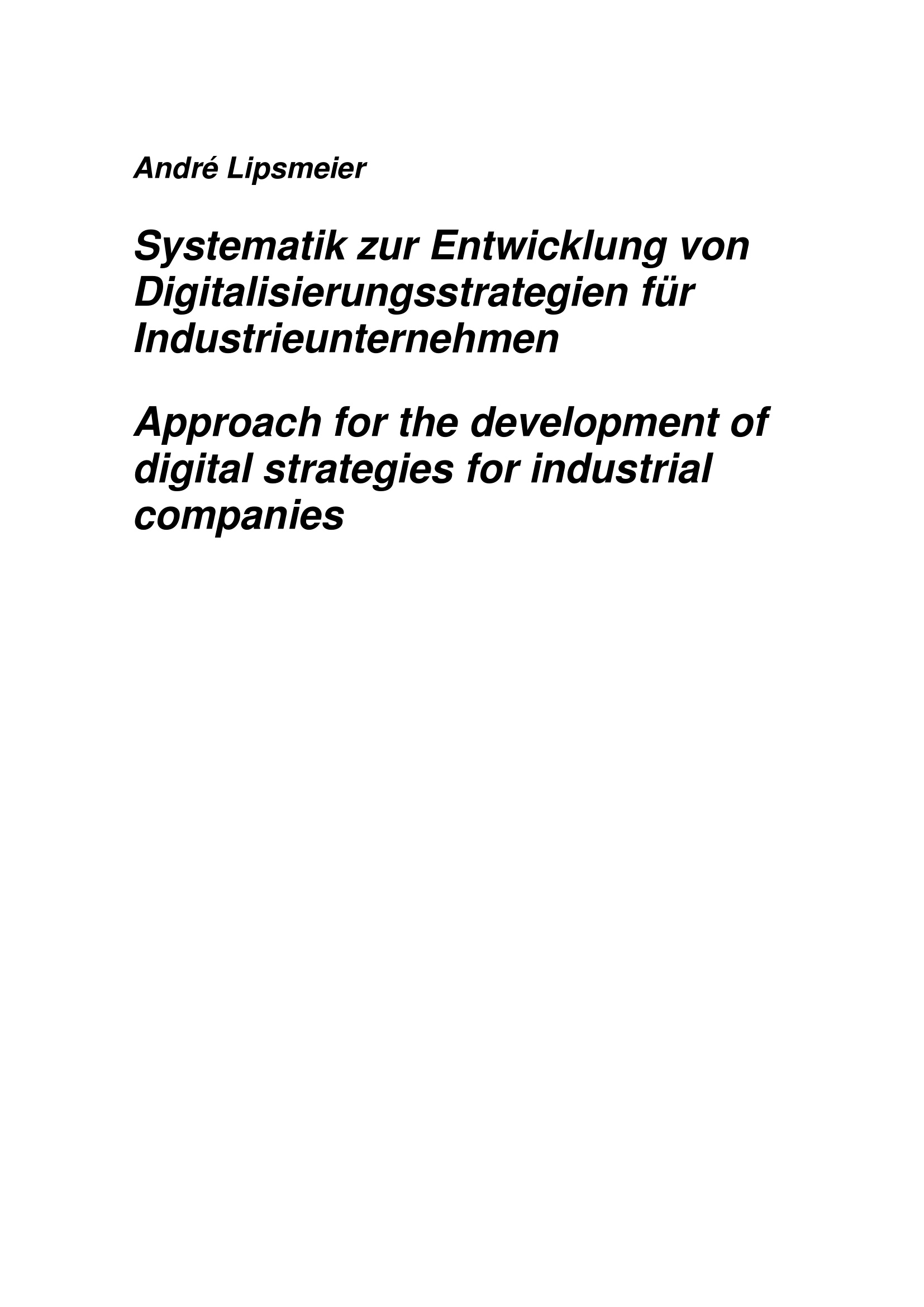 Systematik zur Entwicklung von Digitalisierungsstrategien für Industrieunternehmen / von M.Sc. André Lipsmeier ; Referent: Prof. Dr.-Ing. Roman Dumitrescu, Korreferent: Prof. Dr.-Ing. Jürgen Gausemeier, Korreferent: Prof. Dr.-Ing. Michael Henke