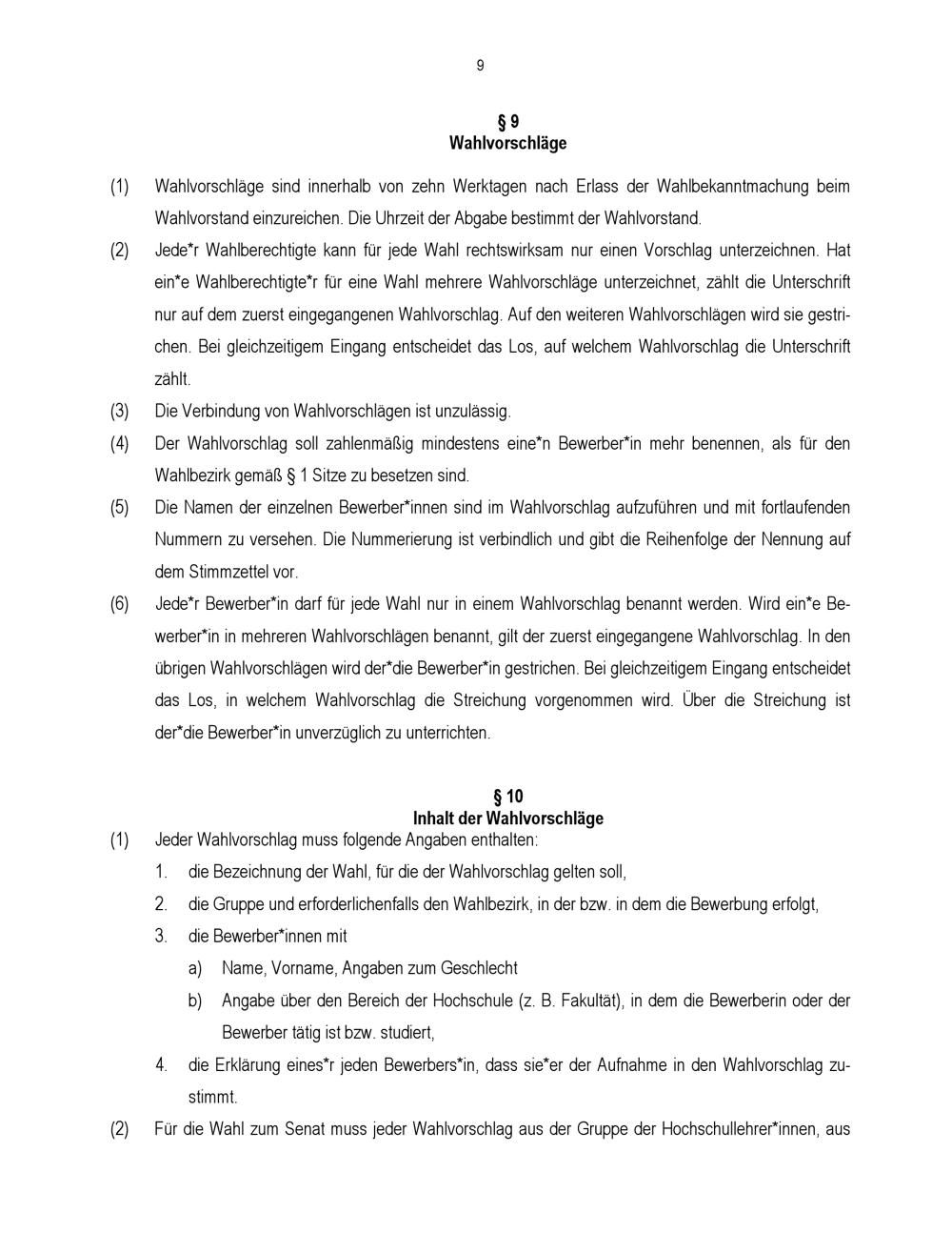 § 9 Wahlvorschläge