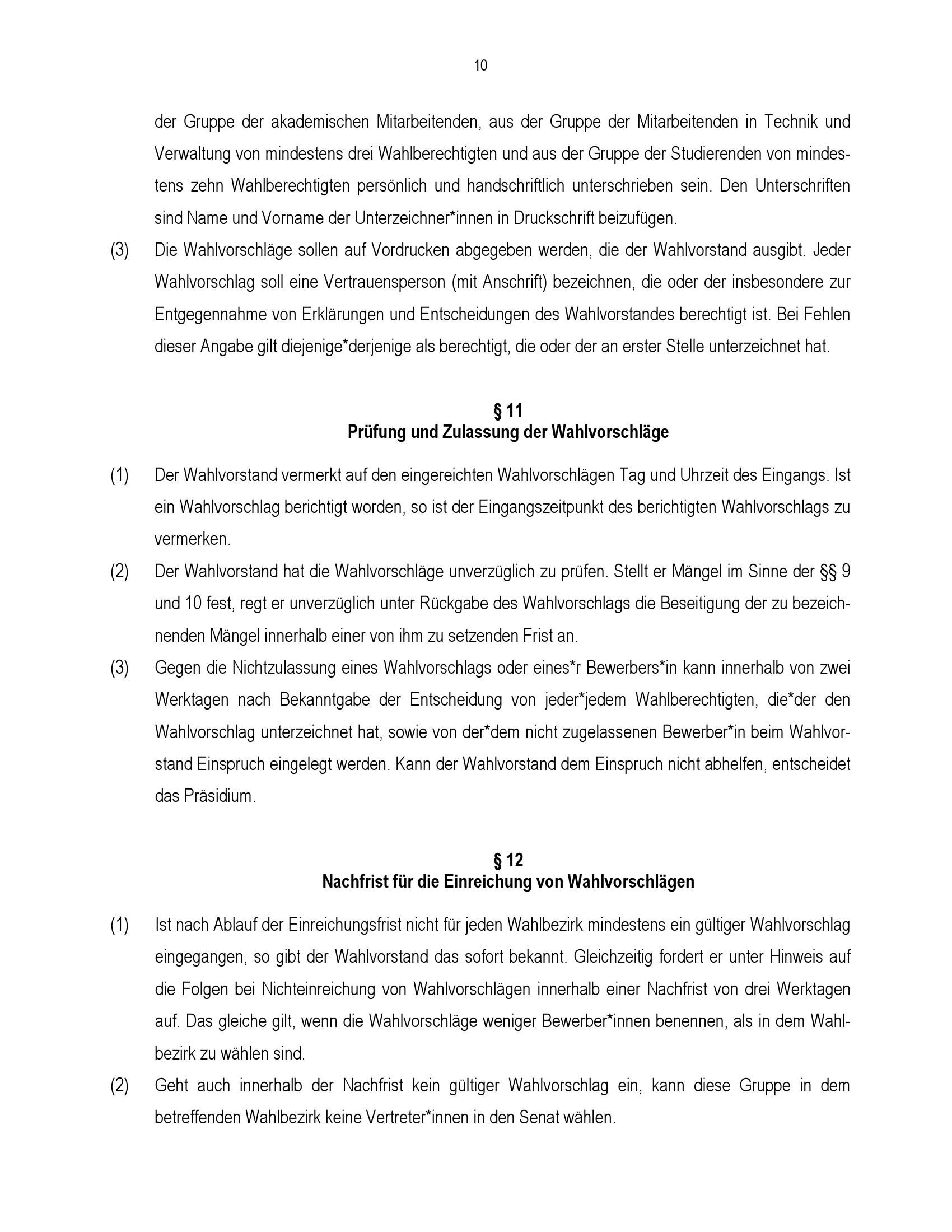 § 11 Prüfung und Zulassung der Wahlvorschläge