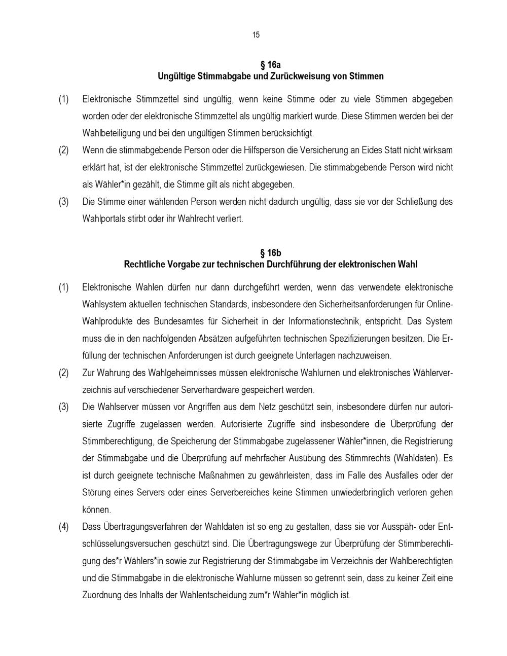 § 16a Ungültige Stimmabgabe und Zurückweisung von Stimmen