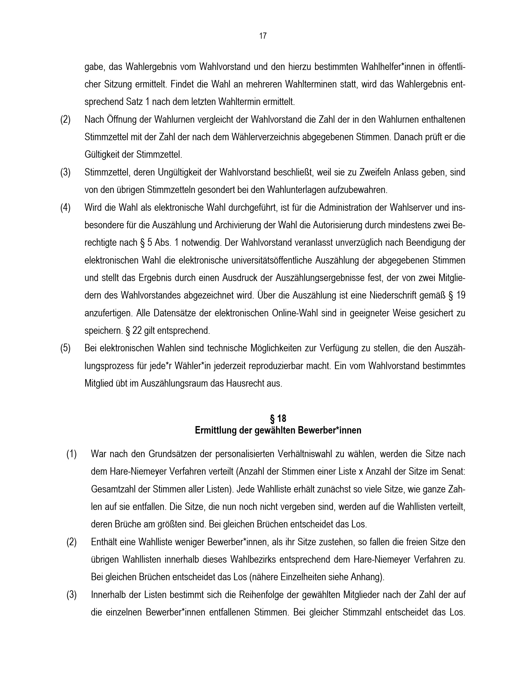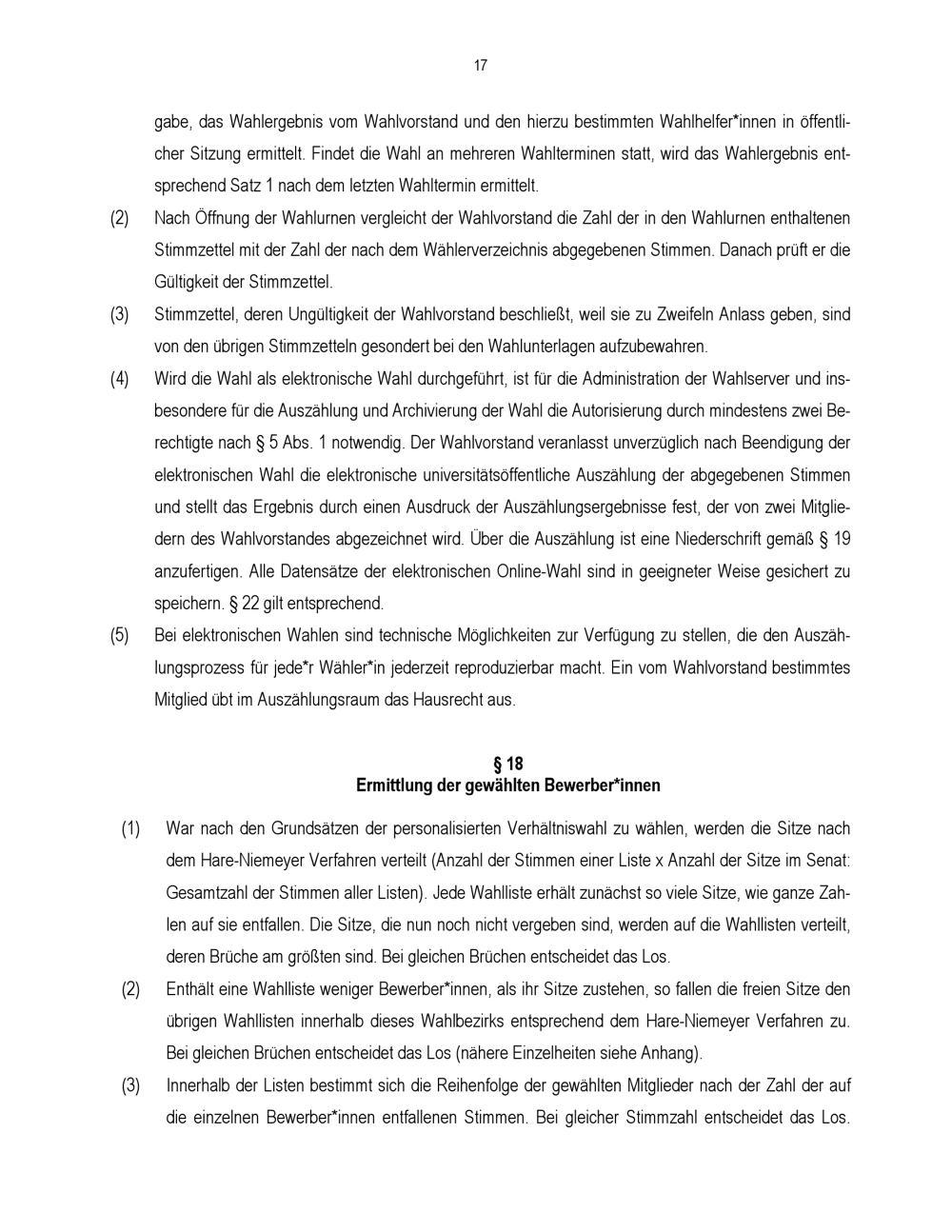 § 18 Ermittlung der gewählten Bewerber*innen