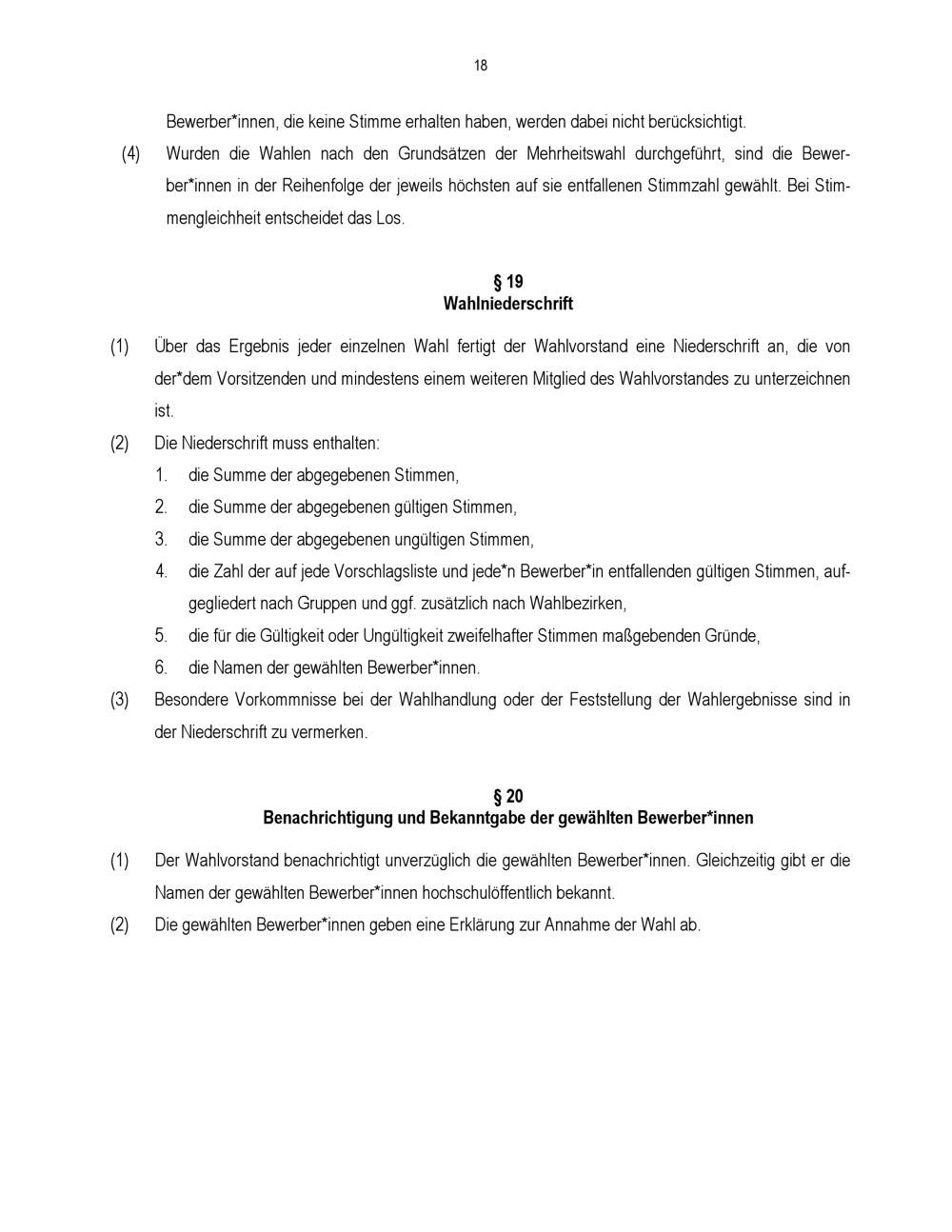 § 19 Wahlniederschrift