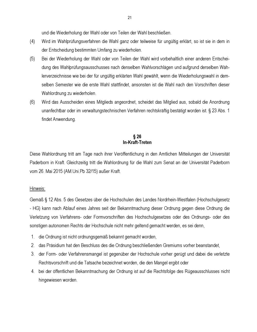 Wahlordnung für die Wahl zum Senat an der Universität Paderborn : vom 19. Mai 2021