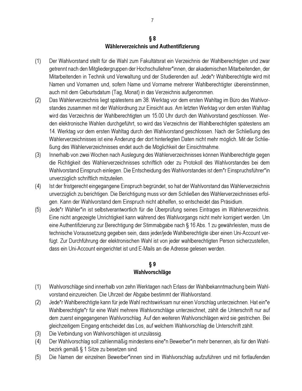 Wahlordnung für die Wahl zum Fakultätsrat und für die Wahl des Dekanats bzw. des*r[...]