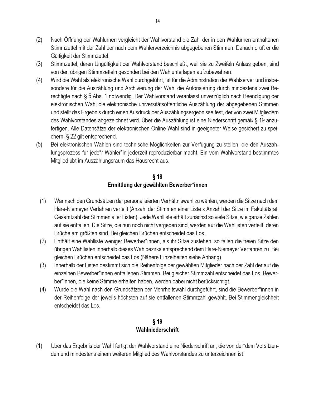 § 18 Ermittlung der gewählten Bewerber*innen
