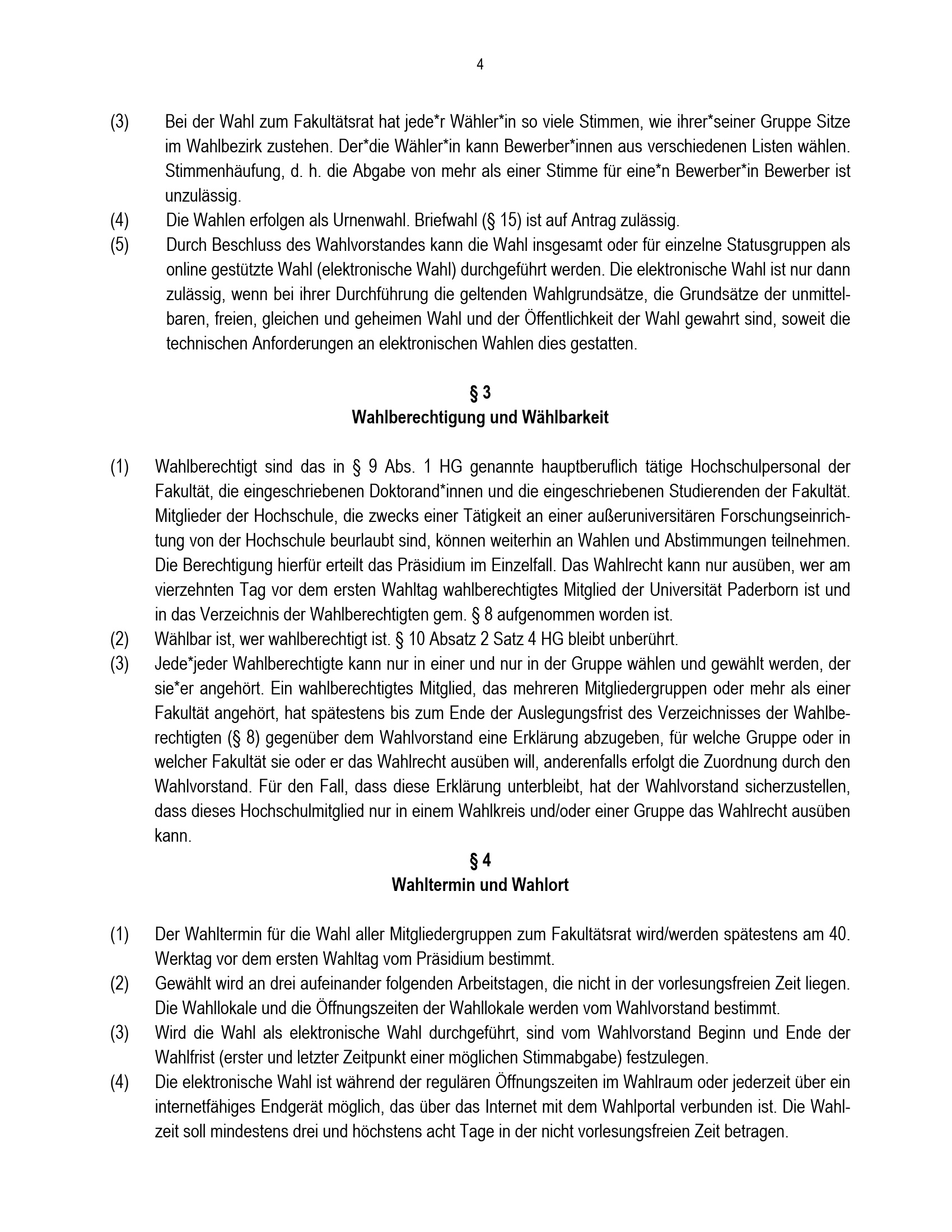 Wahlordnung für die Wahl zum Fakultätsrat und für die Wahl des Dekanats bzw. des*r Dekans*in und des*r Prodekans*in der Fakultät für Naturwissenschaften an der Universität Paderborn : vom 19. Mai 2021