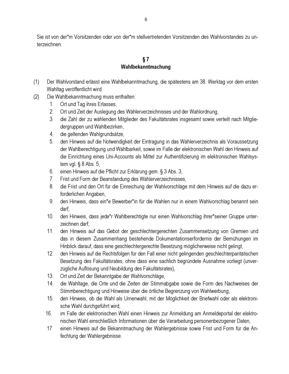 § 7 Wahlbekanntmachung