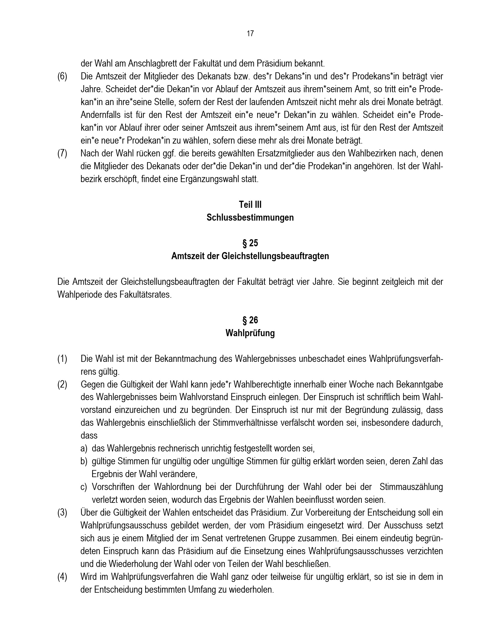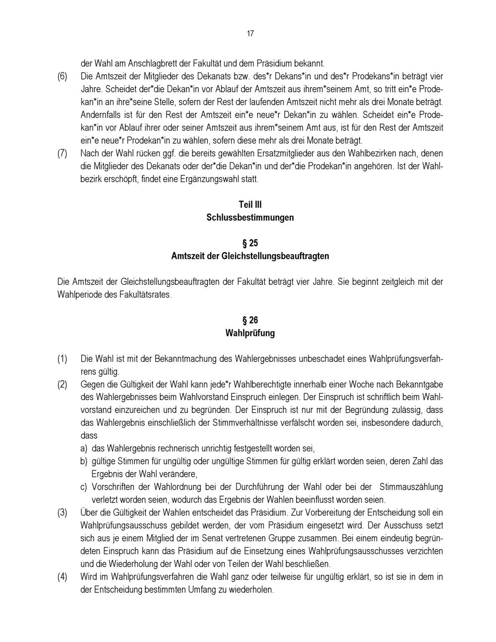 Wahlordnung für die Wahl zum Fakultätsrat und für die Wahl des Dekanats bzw. des*r[...]