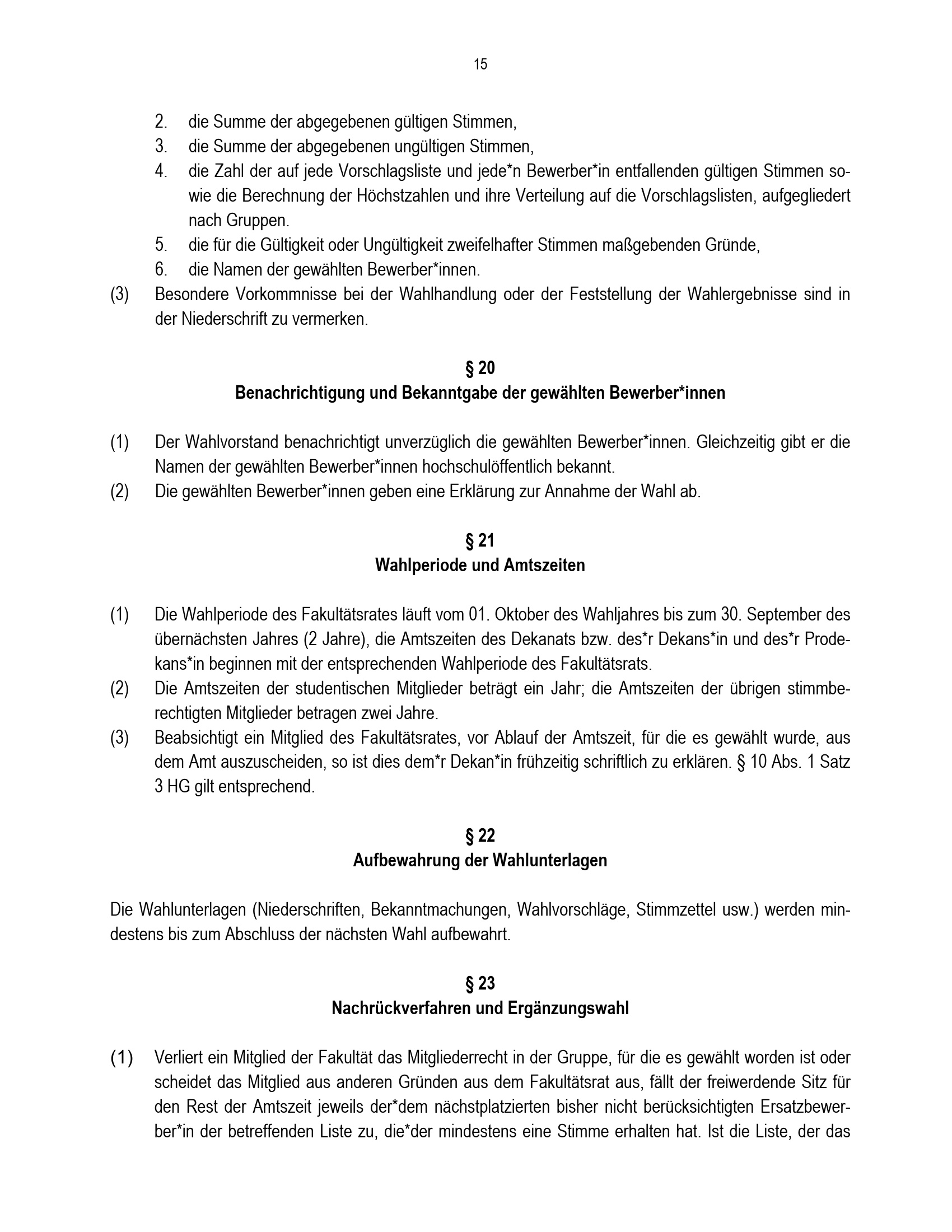 § 20 Benachrichtigung und Bekanntgabe der gewählten Bewerber*innen