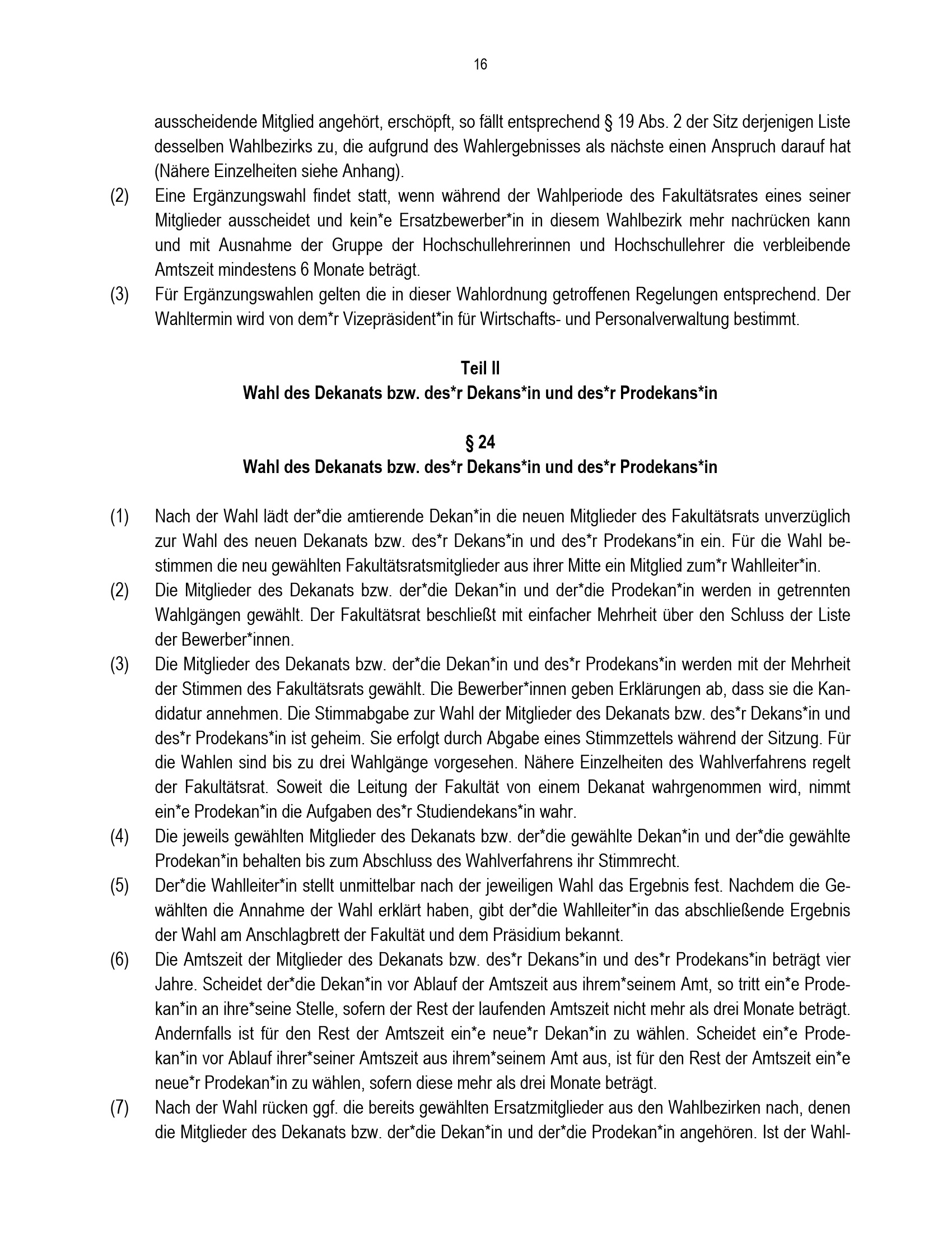 § 24 Wahl des Dekanats bzw. des*r Dekans*in und des*r Prodekans*in