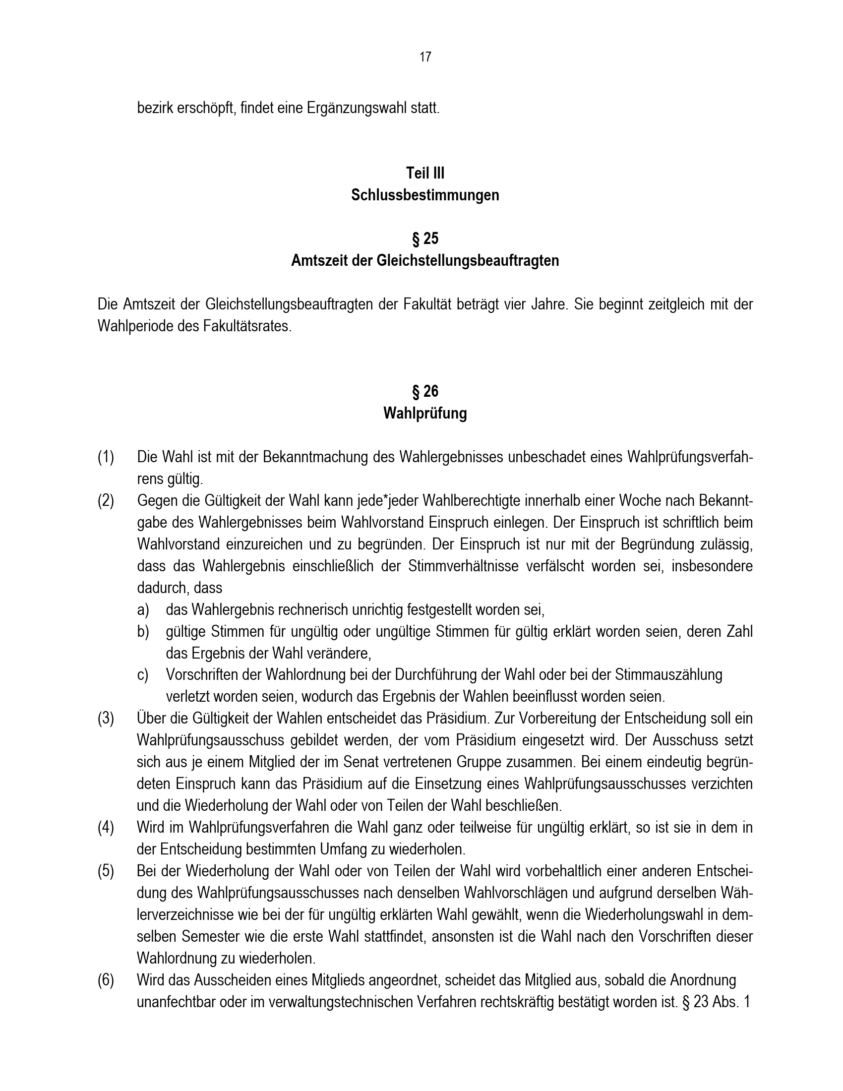 Wahlordnung für die Wahl zum Fakultätsrat und für die Wahl des Dekanats bzw. des*r[...]