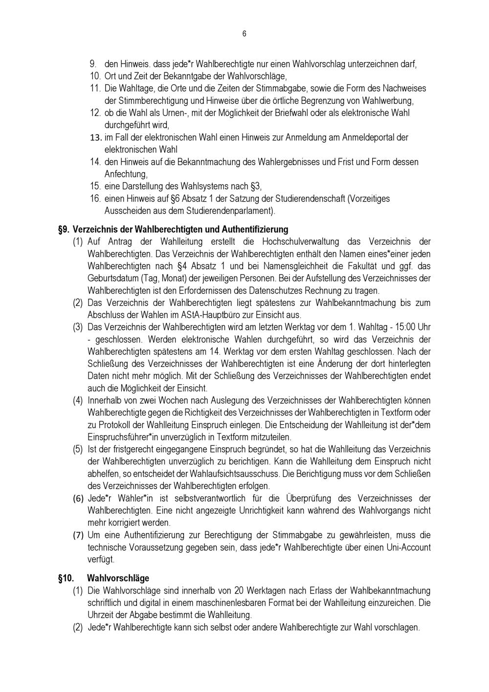 Wahlordnung für die Wahlen zum Studierendenparlament und zu den direkt zu wählenden[...]