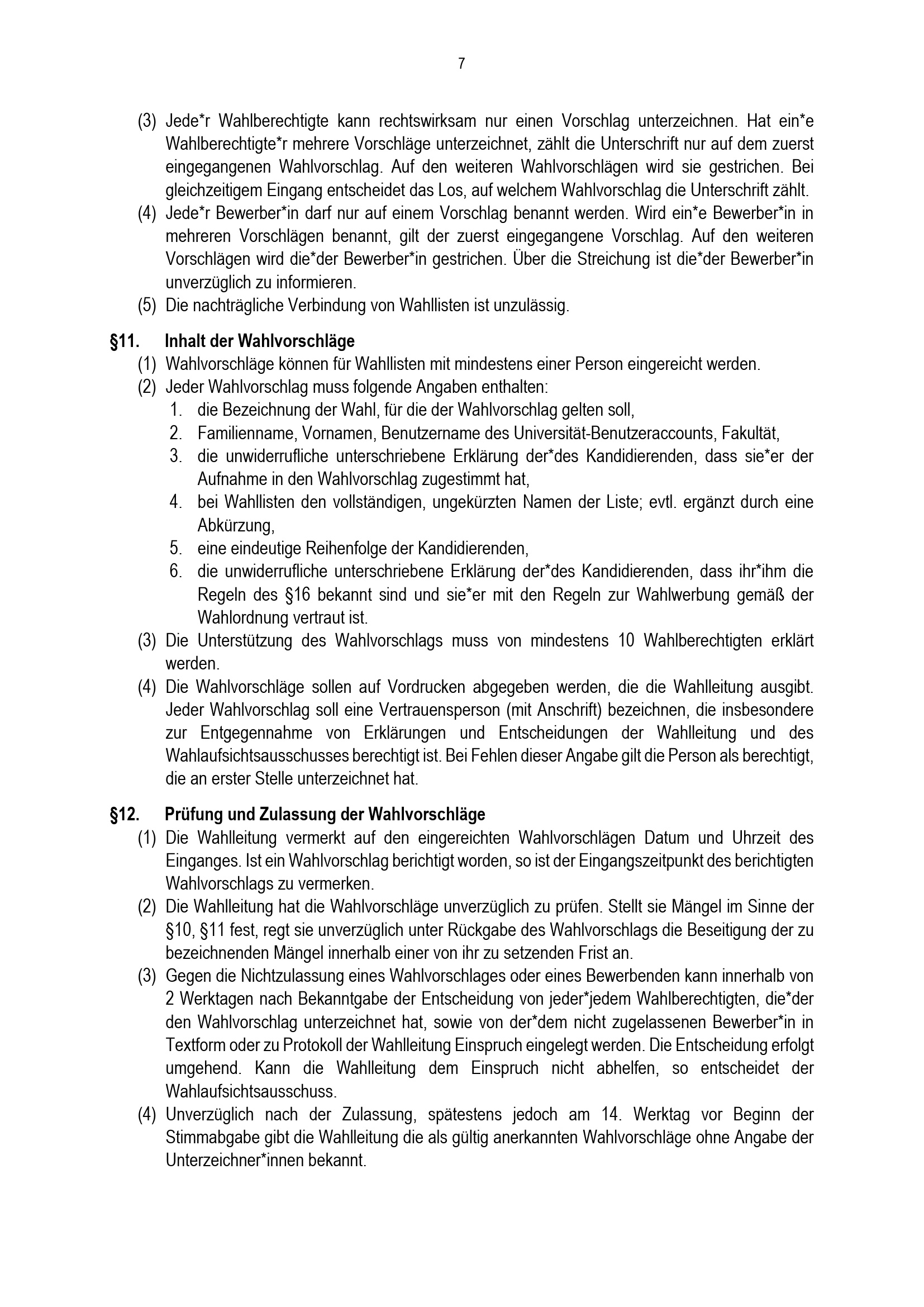 §11. Inhalt der Wahlvorschläge