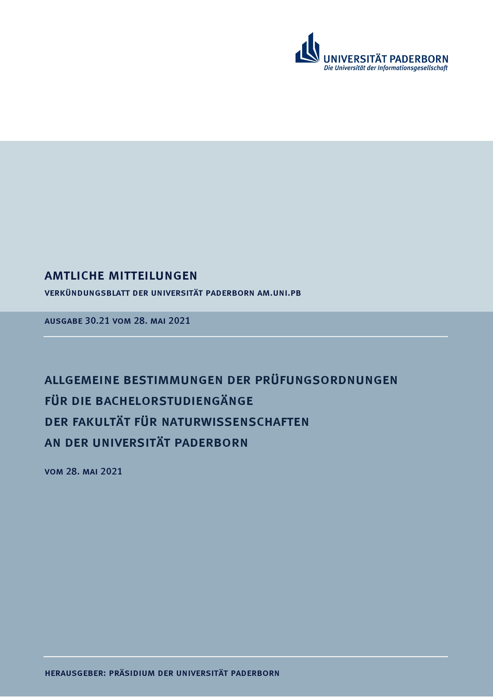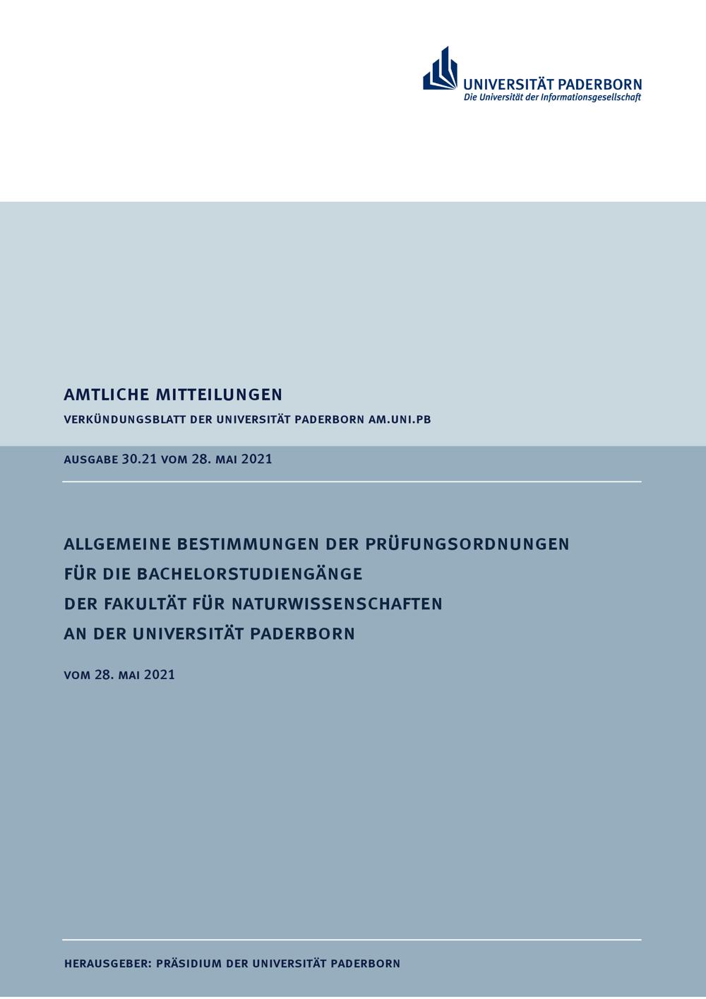 Allgemeine Bestimmungen der Prüfungsordnungen für die Bachelorstudiengänge der Fakultät für Naturwissenschaften an der Universität Paderborn : vom 28. Mai 2021