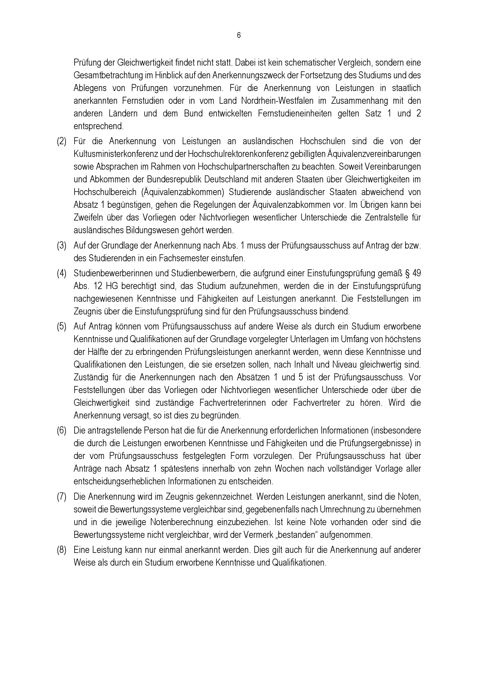 § 8 Anerkennung von Leistungen